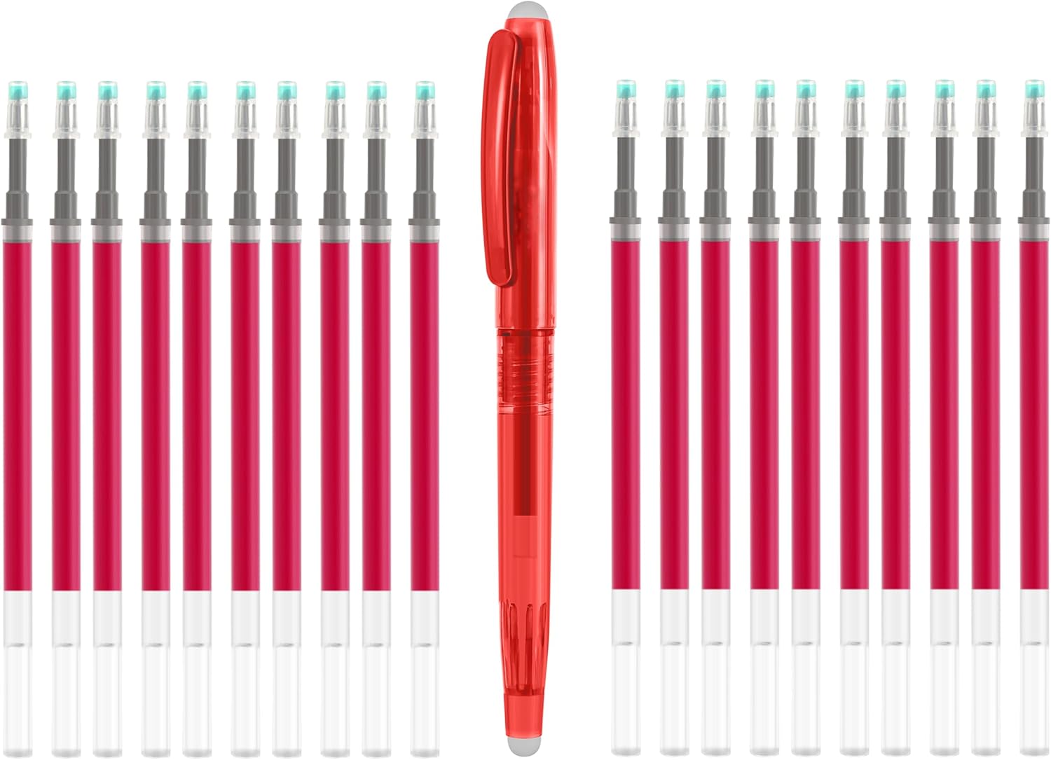 Heat Erasable Fabric Pen with 20 Refills for Tailors Sewing, Quilting, Crafts And Dressmaking Disappearing Ink, Red