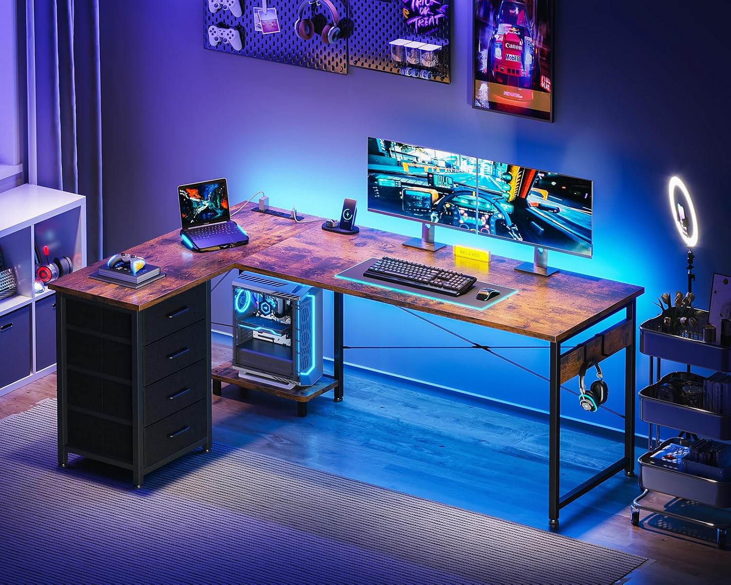 - 【Built-in power outlet】This gaming desk comes with a recessed power outlet that provides 3 AC outlets and 2 USB ports. This l desk simplifies the process of charging devices such as laptops, smartphones and tablets with greater convenience and safety. Whether you're playing games or working intensely, you'll stay powered up without cluttering your space with extra extension cords.