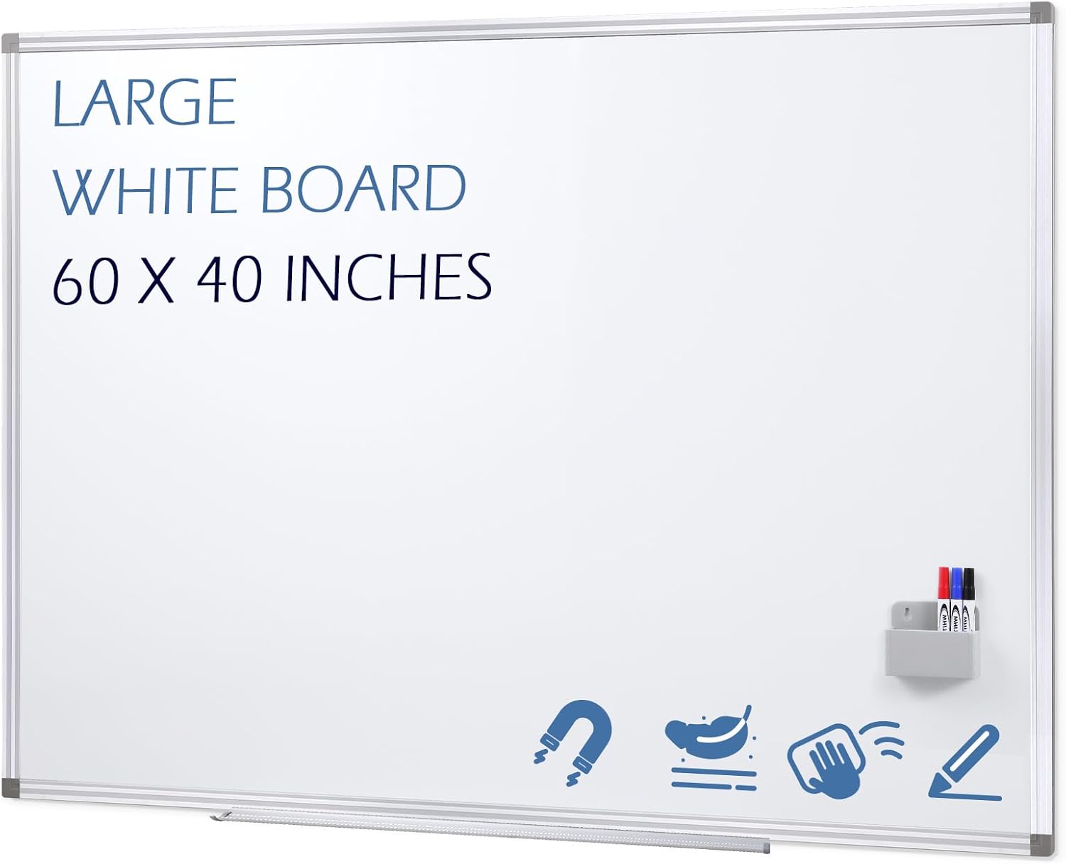SWANCROWN Magnetic Dry Erase Board 60" x 40" Large White Board, with 2.5 cm Thick Aluminum Frame, Long Marker Tray & Magnretic Pen Holder – Whiteboard for Wall, Offices, School, Meeting Rooms