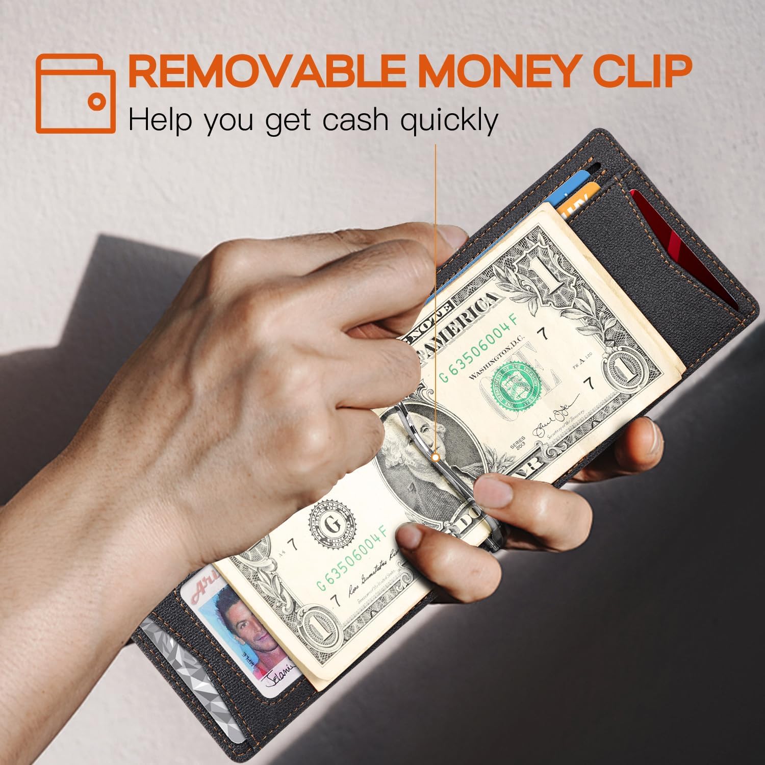 - Large Capacity Wallet: Designed as a slim wallet for men, it effortlessly fits into pockets without bulk. Measuring just 4.4x3.5x0.4 inches the card holder wallet could hold 11 cards and cash securely, ideal for ever daily or travel used