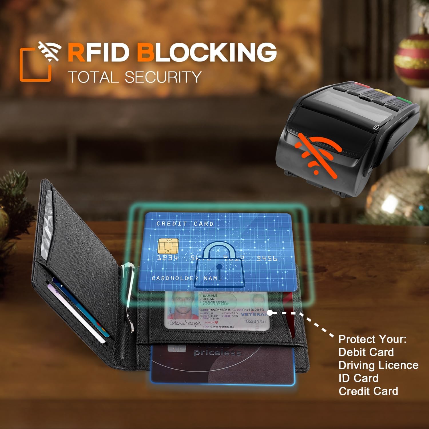 Slim Money Clip Wallets for Men RFID Blocking 11 Card Holder Minimalist Small Thin Carbon Leather Bifold Mens Front Pocket Wallet Gift Box