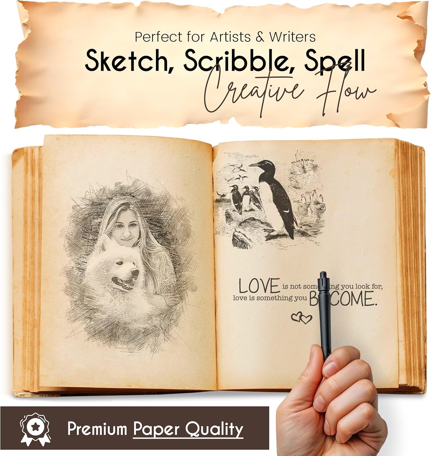 - π§ππππ ππππππ ππππ π£ππ£ππ₯: This brown journal features antique-style thick deckle edge pages that add a rustic charm to your writing or sketching. Designed for durability and elegance, this travel journal notebook provides a smooth, sturdy surface for capturing your thoughts, art, and memories.