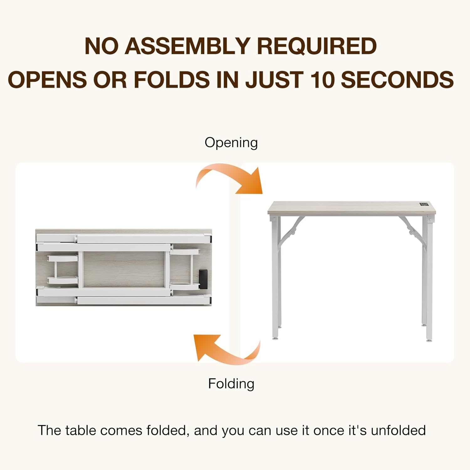 - ππ‘π’ ππ¦π¦ππ πππ¬ π₯ππ€π¨ππ₯ππ - π₯ππππ¬ π§π’ π¨π¦π β Enjoy the convenience of a folding table that arrives fully assembled. With an integrated design of both desk surface and frame, simply open the box, unfold, and start using immediatelyβperfect for those who value simplicity and time.