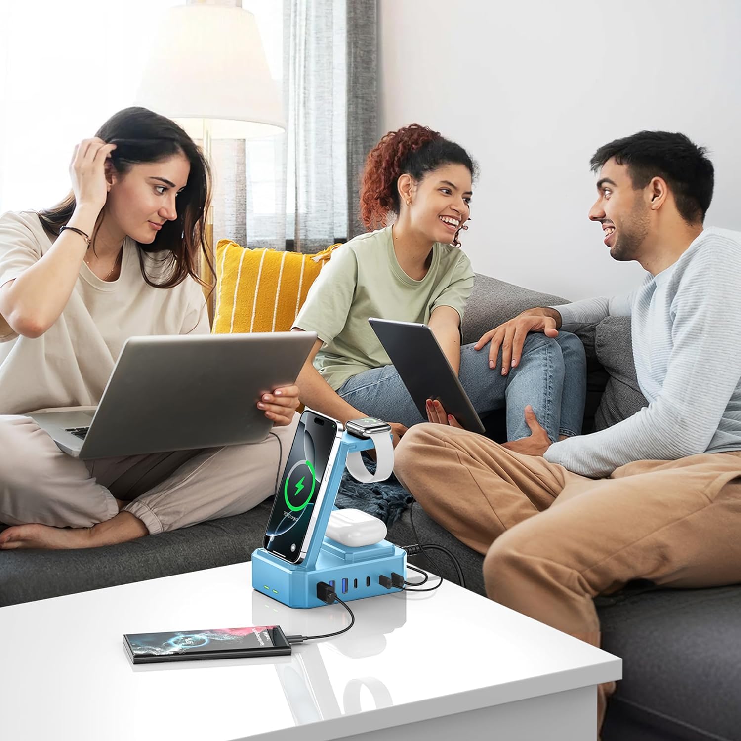 - Compatible Phone Models : (Wireless charging only for Apple family) iPhone 16 Pro Max, 15 Pro Max 14, 14Plus, 14Pro, 14Pro Max, iPhone 13, iPhone 13 Pro, iPhone 13 Pro Max, iPhone 13 mini, iPhone SE, iPhone 12, iPhone 12 Pro Max, iPhone 12 Pro, iPhone 12 mini, iPhone 11, iPhone 11 Pro Max, iPhone 11 Pro, iPhone XR, iPhone XS, iPhone XS Max, iPhone X, iPhone 8, iPhone 8 Plus, (Wireless charging Only for Apple family) ,USB Ports Compatible with Smartphone, Tablet, and Laptop, such as MacBook Pro 13''/ MacBook Pro 15''/ MacBook Pro 16"/ MacBook Air 13''/ MacBook 12'';Apple Watch 1-9/Ultra, AirPods 3 Pro, Dell XPS 15/ 13; Google Pixel 5/ Pixel 4a/ 4 XL/ 4/ Pixel 3a/ 3a XL/ 3 XL/ 2 XL /2; iPad Pro 12.9''/ iPad Pro 10.5''/ iPad Pro 11''/ iPad Mini Series/ iPad Air Series; AirPods Pro, Nintendo Switch; LG G7/ V30+; Nexus 5X/ 6P, Sony XZ2 Premium, HTC One, Smartphones, Headphones, Tablet, and more (Wireless charging only for Apple family) iPhone 16 Pro Max, 15 Pro Max 14, 14Plus, 14Pro, 14Pro Max, iPhone 13, iPhone 13 Pro, iPhone 13 Pro Max, iPhone 13 mini, iPhone SE, iPhone 12, iPhone 12 Pro Max, iPhone 12… See more