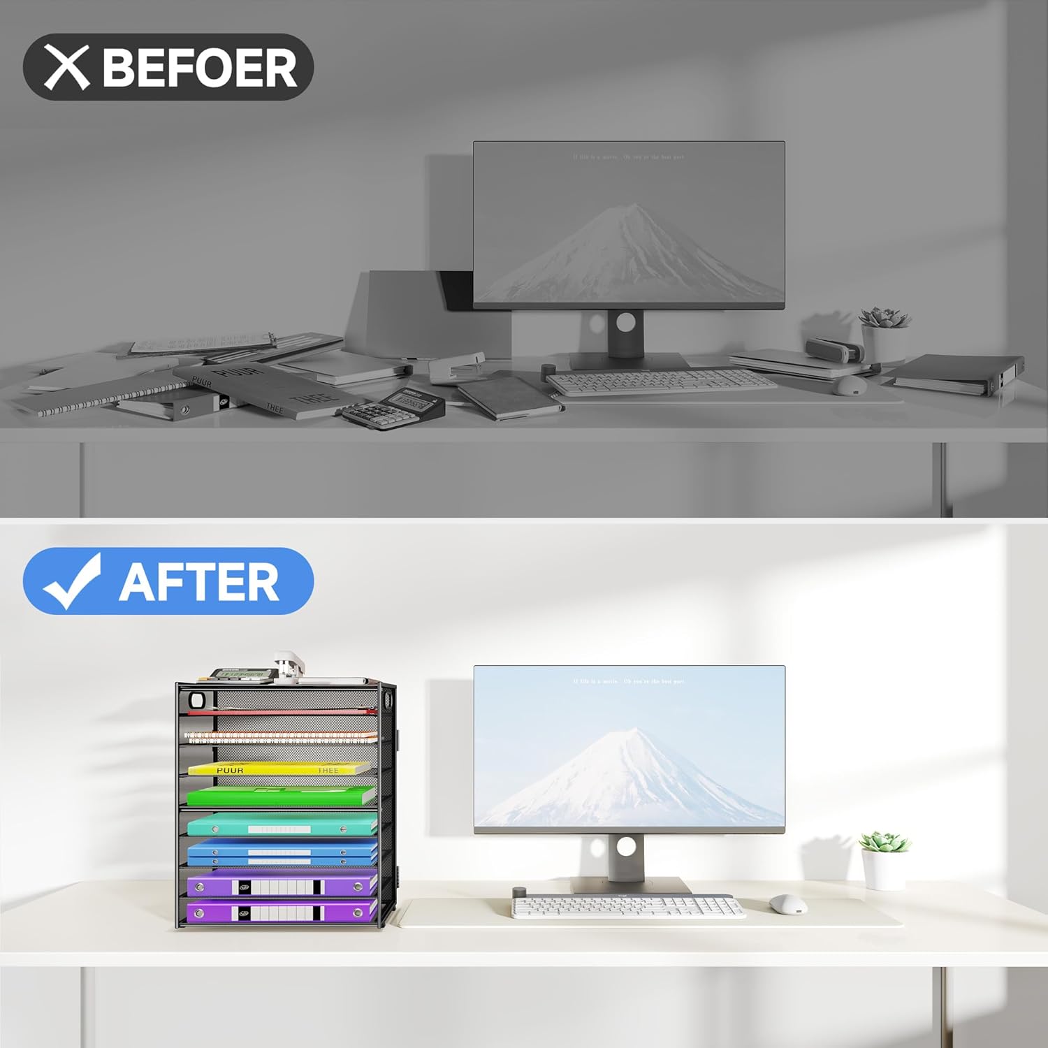 - 【EXTRA-LARGE STORAGE CAPACITY】Our 9-tier paper organizer offers more storage space than low-capacity file organizers, allowing you to sort and store more papers, letters, documents, folders, books, magazines, staplers, calculators, and sticky notes. Keep your workspace tidy and organized!