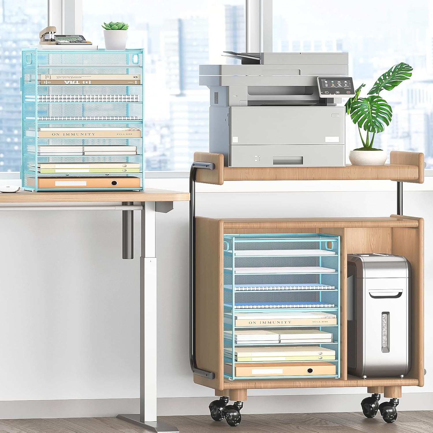 Subekyu 9 Tier Paper Letter File Tray Organizer for Desk, Large Mesh Desk Folder Sorter Organizer with Handle, Include 6 Pcs Adjustable Height Slid Tray for Office Home School Supplies Storage, Blue