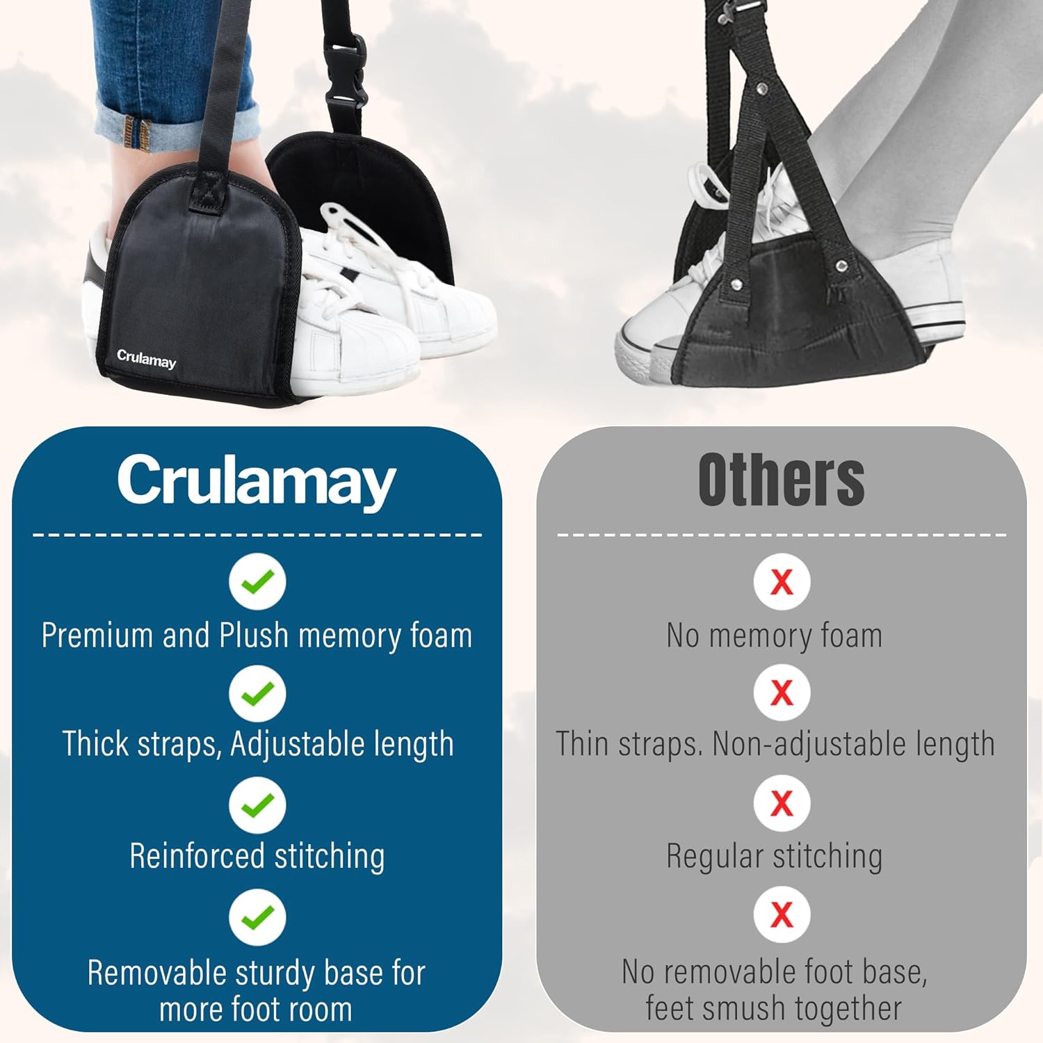 - Durable & Comfortable Design: Made with plush memory foam and reinforced stitching, this airplane foot rest for long flights offers long-lasting durability; the removable footboard provides a comfortable room for your feet, keeping them apart without squeezing, for comfort