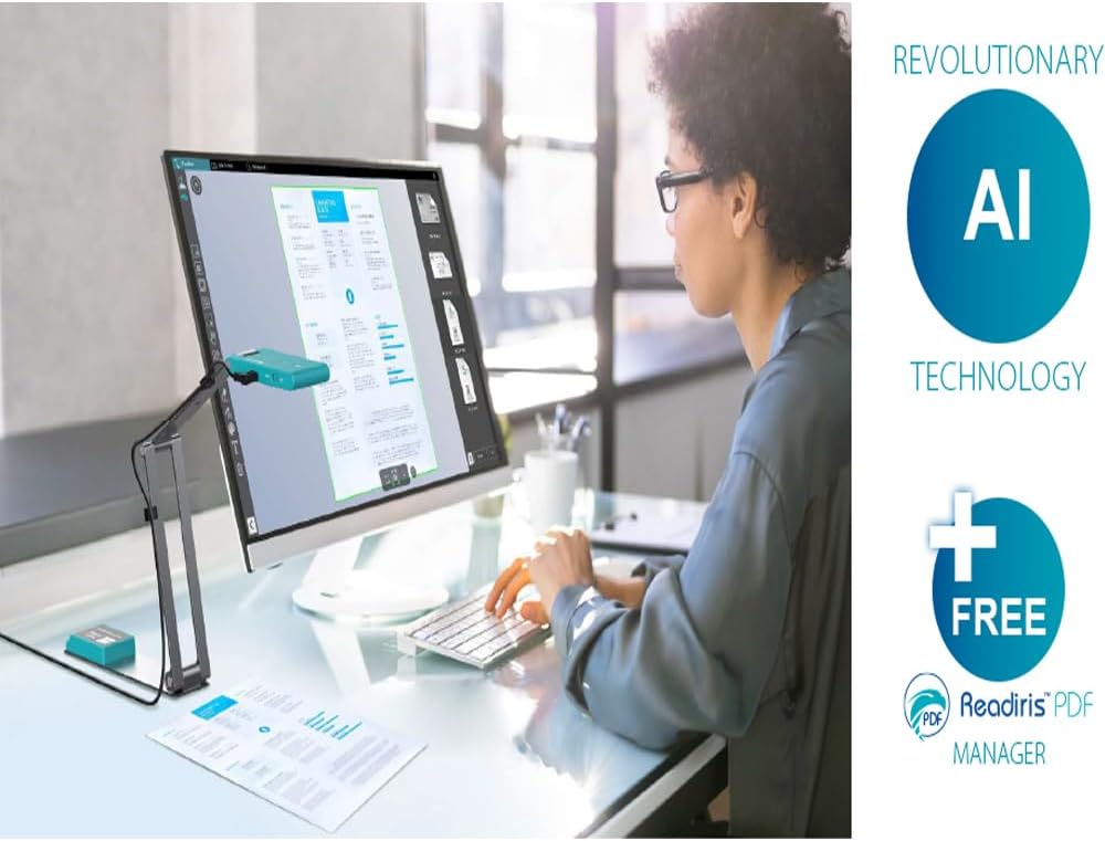 IRIScan Visualizer Webcam Document Camera v7:4K UltraHD-13MP,4in1,Free Readiris PDF OCR,visualizer,Scanner A3,Portable Scanner,Web Conferencing,Distance Learning,AI Micro,Led,USB,WinMac
