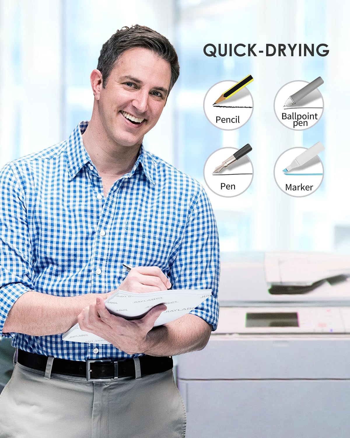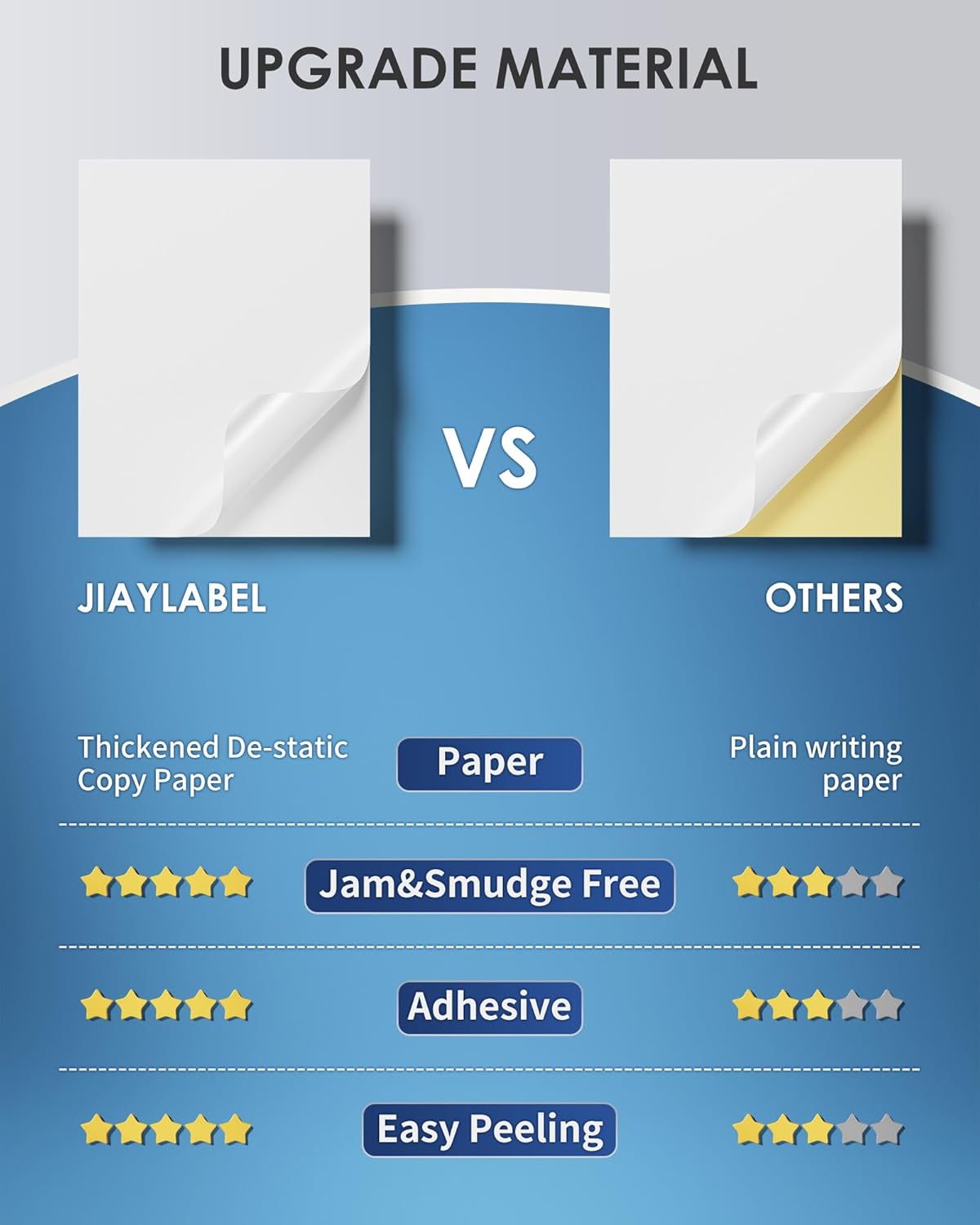 - Upgrade Material: In order to avoid jam and smudge, we discard the writing paper, do not consider the cost increase brought about by material upgrading, and use thickened de-static copy paper to make the label, just for your best experience and save your business money