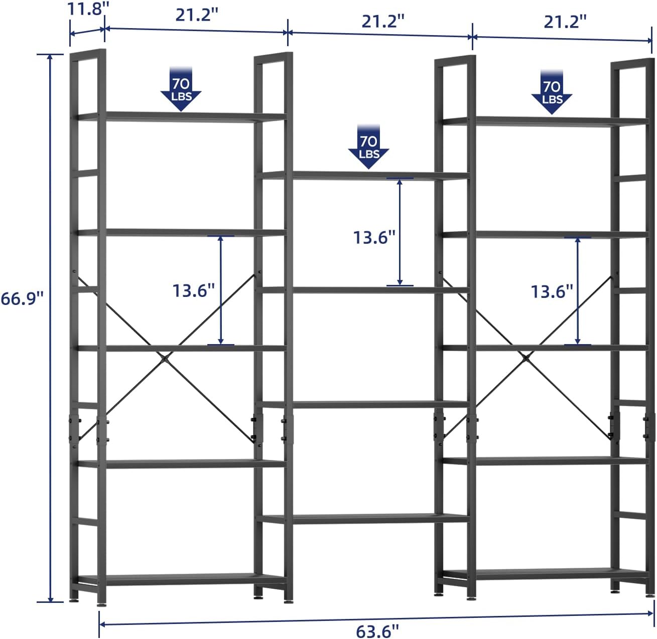 - ăTriple Column Multifunctional BookshelfăFeaturing 14 open shelves, this bookshelf provides ample space to store books, photo albums, alarm clocks, potted plants, and various decorations; It serves as both a functional storage unit and a stylish display for your beloved collections; The minimalist and elegant design complements a variety of home decor styles, making it a versatile addition to any study room, bedroom, living room, dining room, or office; Dimensions: 63.6''*11.8*66.9''(L*W*H)