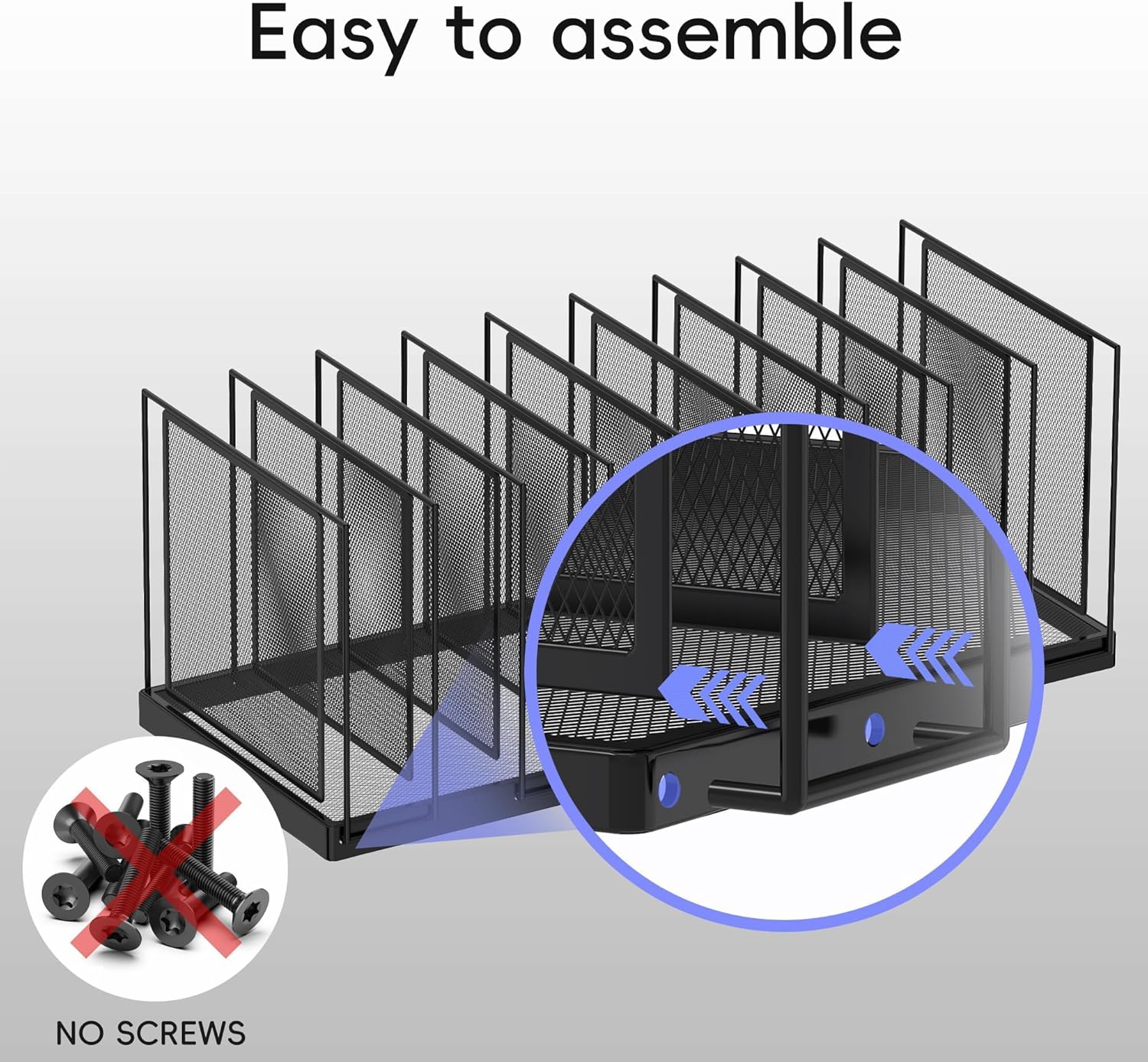 - [9 File Compartments] Our 9-section file folder organizer provides more storage space for files, books, mails, paper and magazines. 9 vertical sorters can hold your documents and laptop upright, allowing you to easily keep workspace tidy and organized.