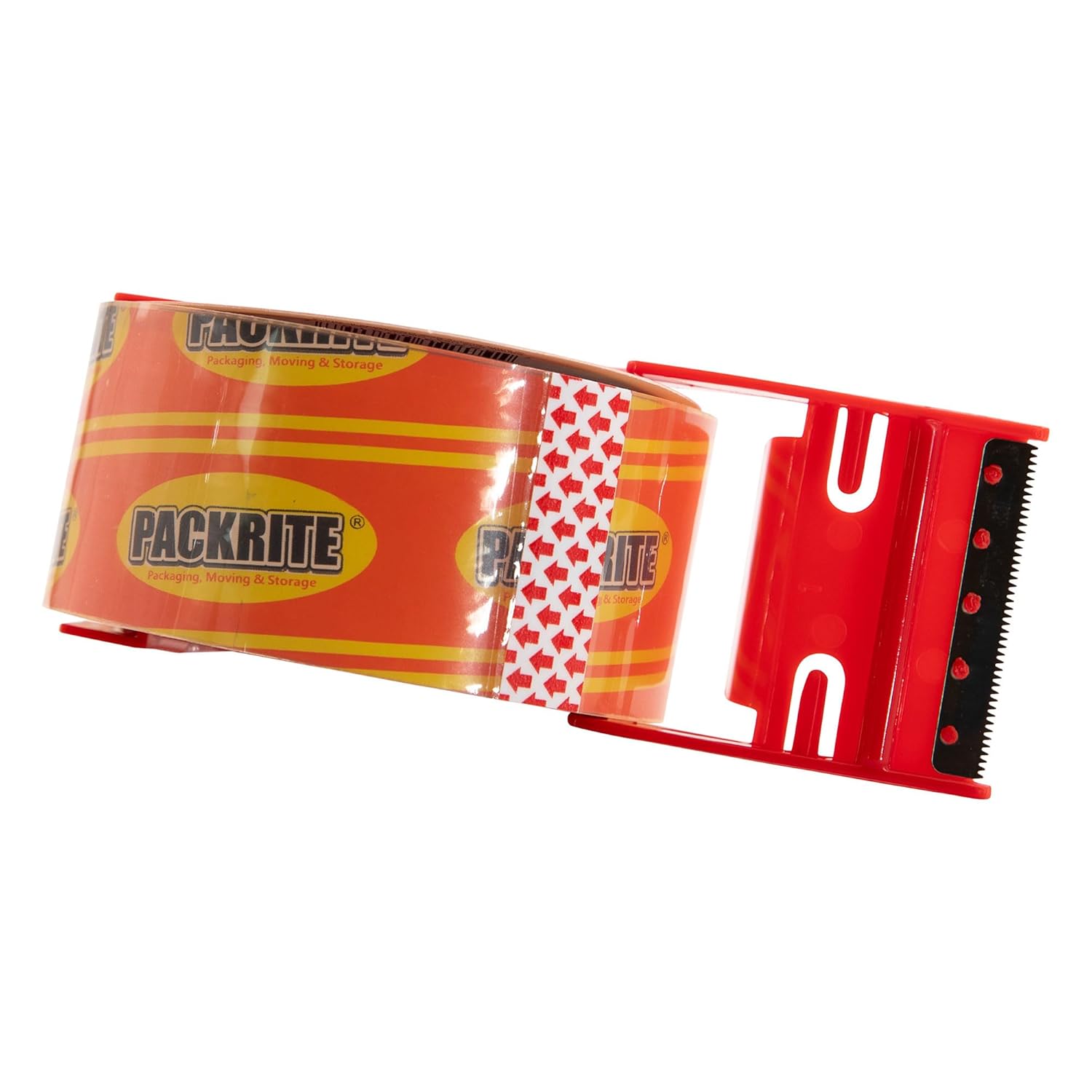 - DISPENSER INCLUDED - Each roll comes loaded on it own handy tape dispenser equipped with a serrated cutter allowing for one handed operation. Great for warehouses and large moving jobs where everyone gets their own roll and dispenser. No more wated time reloading a tape gun.