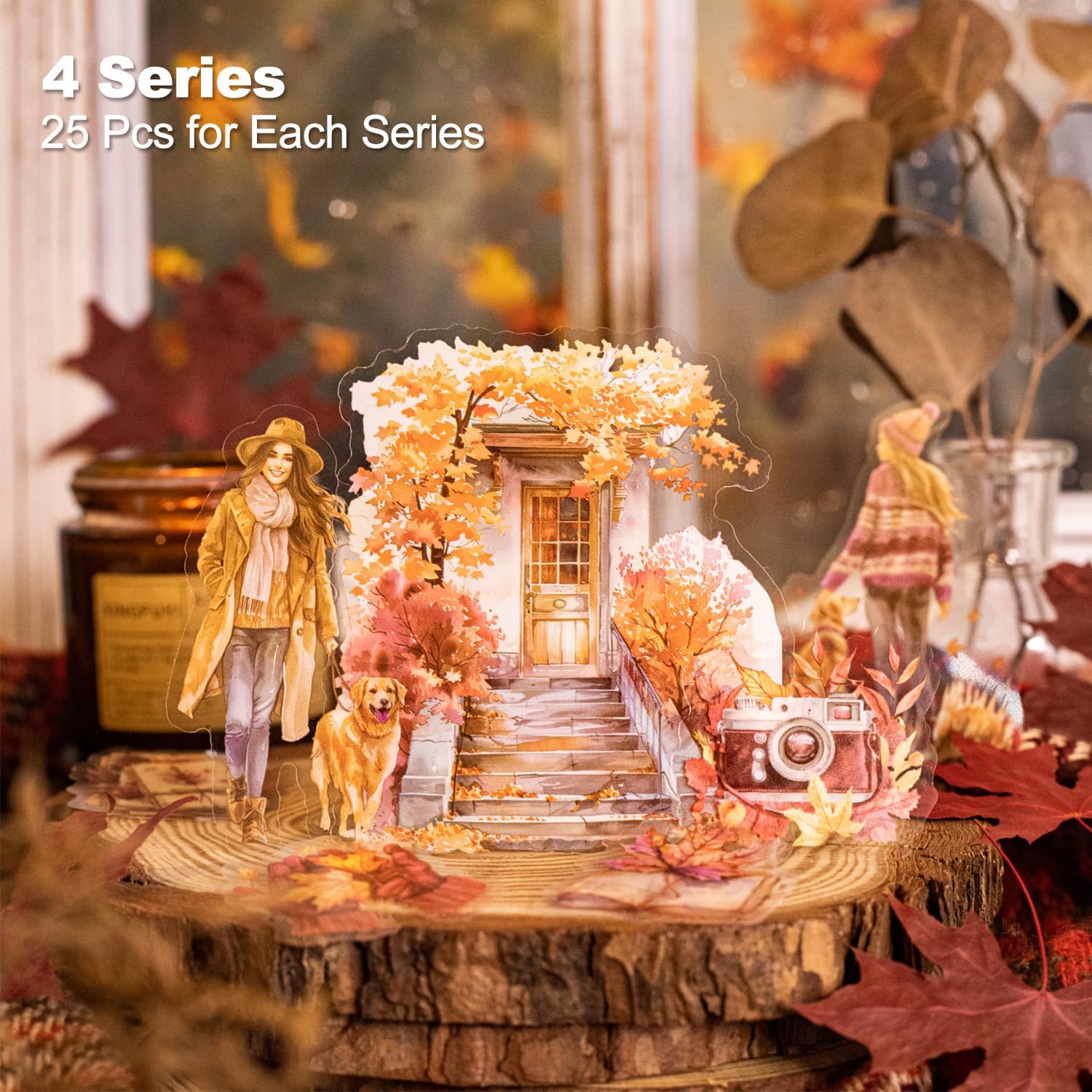 - Autumn-Inspired Designs: Bring the beauty of fall into your projects with over 100 PET stickers, each featuring stunning autumn landscapes, cozy settings, and warm tones ideal for scrapbooking, journaling, or crafting
