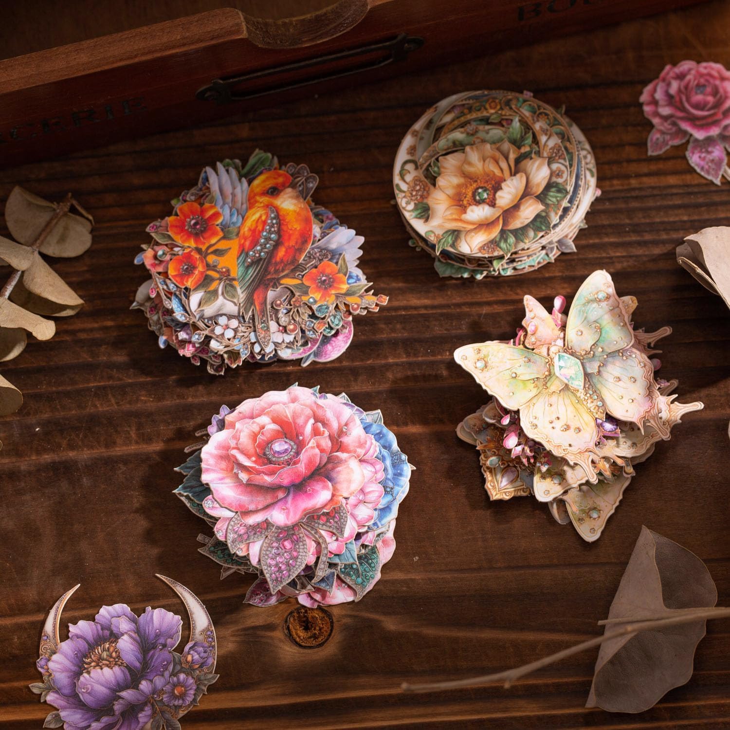 Pearl Treasure Box Sticker Set, 120Pcs Retro Cardstock Stickers for Scrapbooking, Journaling, DIY Crafts, and Art Decoration