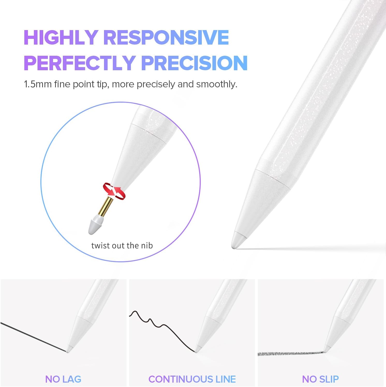 - 【Compatible with 2018-2025 iPad & iPad Pro】The stylus supports for iPad series 2018-2025 model: iPad Pro 13" (M4), iPad Pro 12.9"(3rd/4th/5th/6th), iPad Pro 11"(All Generations), iPad Air M3/M2/5th/4th/3rd Gen, iPad 11th/10th/9th/8th/7th/6th, iPad Mini 6th/5th Gen. Please confirm your devices before you place an order, another model is invalid