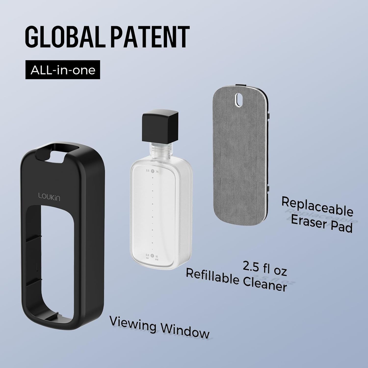 - Innovative All-In-One Design: Combines dry eraser and whiteboard cleaner in one. Unique design with global patent. Clean surfaces quickly while saving space & time