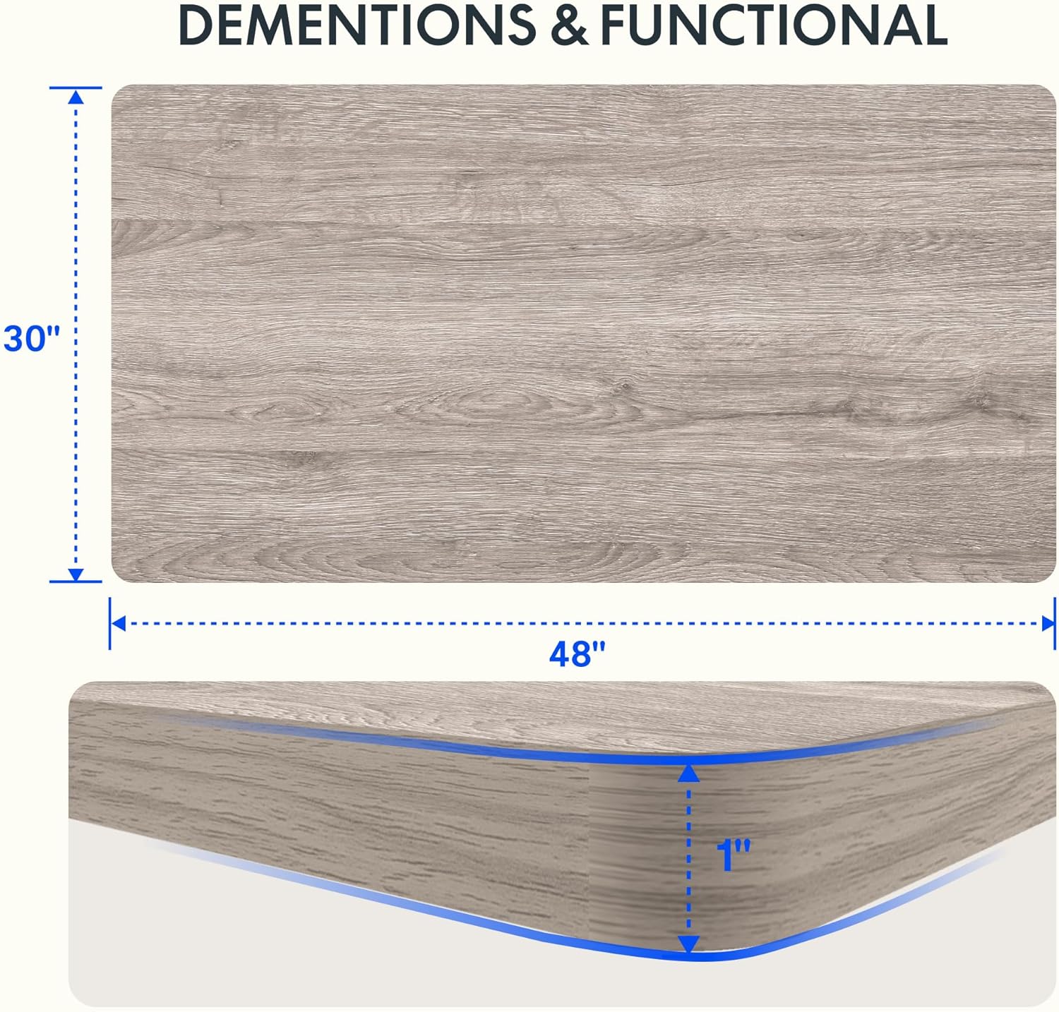 FLEXISPOT EN2 Whole-Piece Standing Desk with Clamp Power Strip, 48 x 30 Electric Stand Up Height Adjustable Desk with Cable Management (White Frame + 48" Gray Wood Grain, 2 Packages)