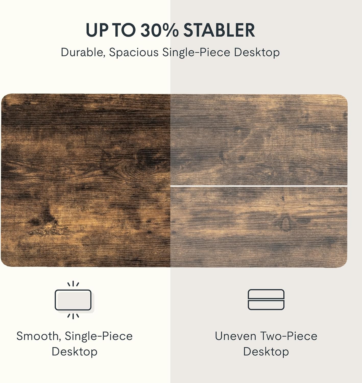 - AMPLE WHOLE-PIECE DESKTOP: With its whole-piece 1β eco-friendly desktop, this standing desk provides plenty of room for your computer setup, documents, and accessories, creating a well-organized and productive work environment. Due to hand measurements, desktop dimensions may vary slightly by 0 to 1β.