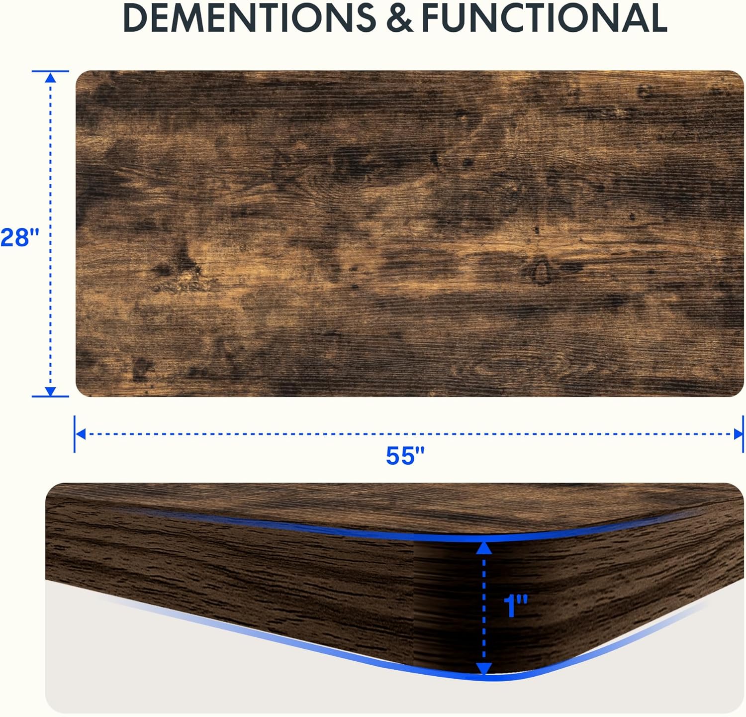 FLEXISPOT EN2 Whole-Piece Standing Desk with Clamp Power Strip, 55 x 28 Electric Stand Up Height Adjustable Desk with Cable Management (White Frame + 55" Rustic Brown Desktop, 2 Packages)