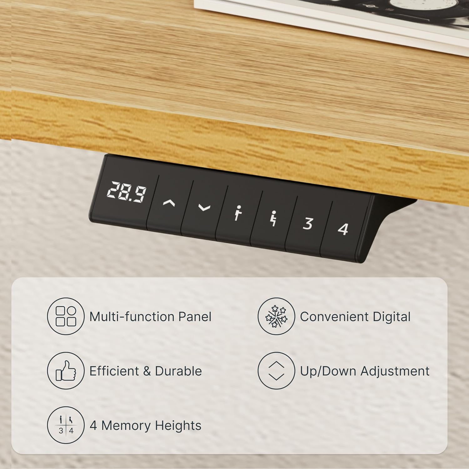 - 4 MEMORY PRESETS: Easily store and recall different height settings with our multifunctional memory system. Effortlessly switch between sitting and standing to reduce the risk of health issues like back and neck pain caused by prolonged sitting.