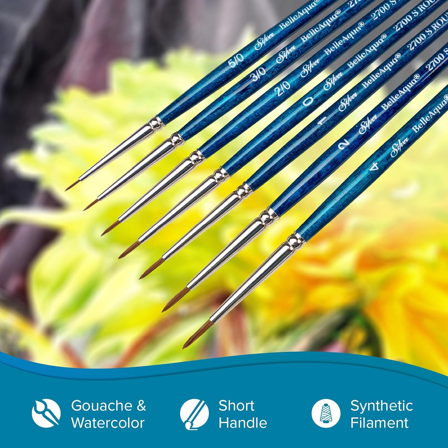 Silver Brush Limited BA-2706S BelleAqua Larger Size Round Watercolor Brush Set, 5pc Professional Short Handle Premium Soft Synthetic Red Sable Round Paint Brush Set, Sizes 6, 8, 10, 12, and 16