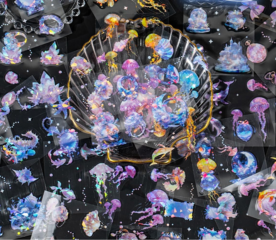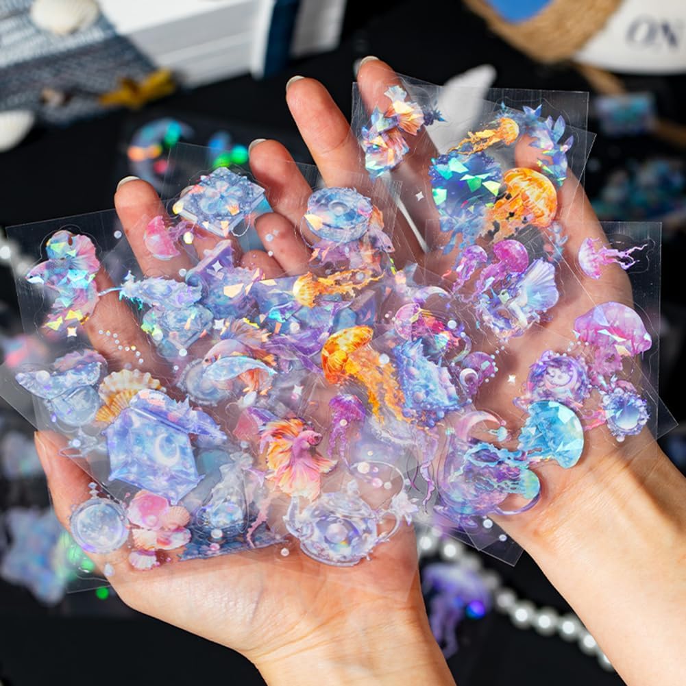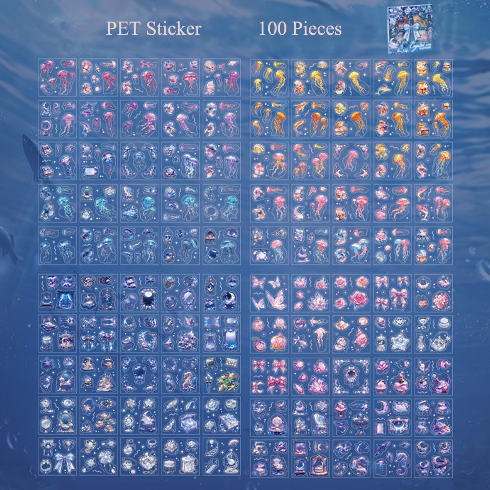 MAFELOE PET Scrapbook Stickers, 100 Sheets of Box Set, Aesthetic Deco Journaling Supplies for Junk Bullet Album Calendars Diary Planner- Crystal& Fantasy Series