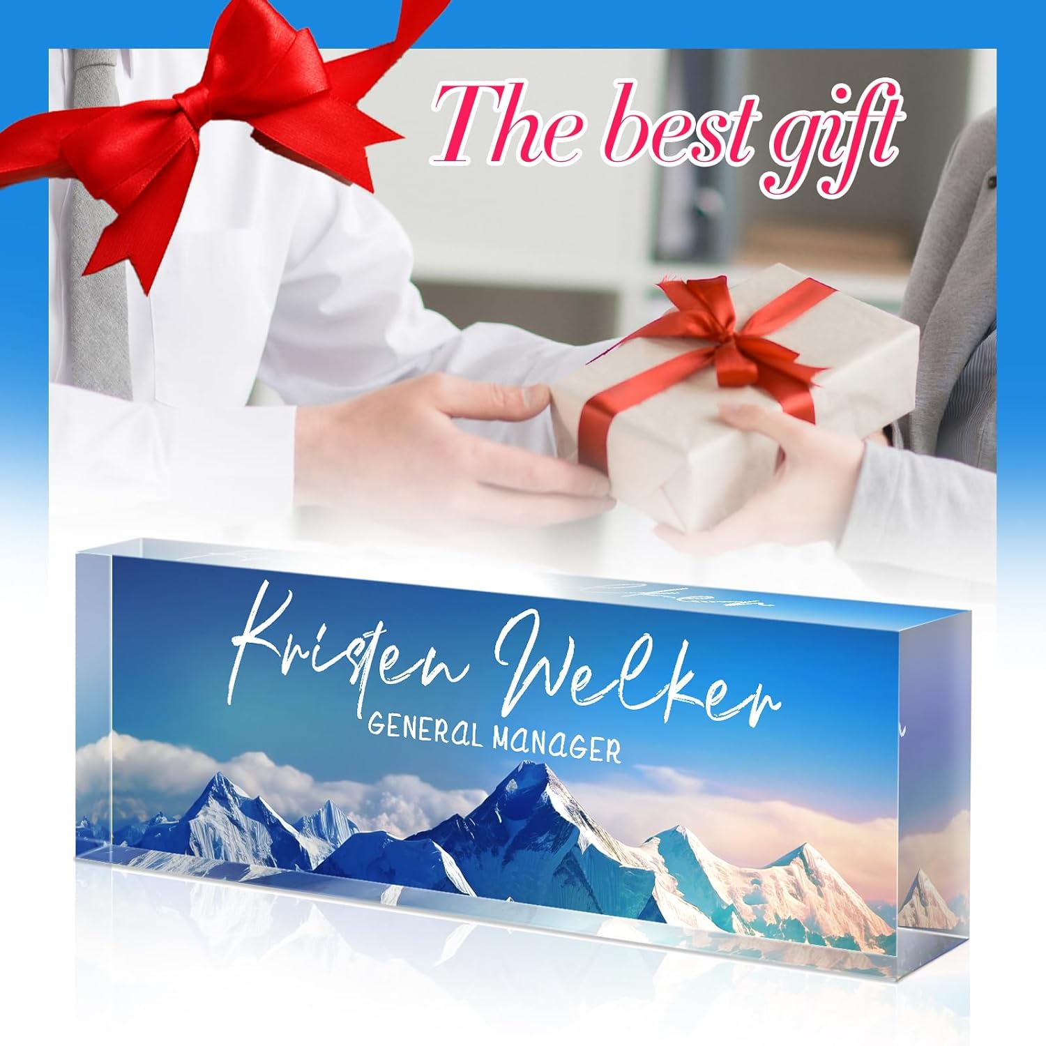 Personalized Name Plate for Desk - Custom Engraved Name Plates for Man - Boss Day Gifts for Boss - Acrylic Office Decor Appreciation Gifts for Teacher Nurse Coworker Social Worker (Blue Mount)