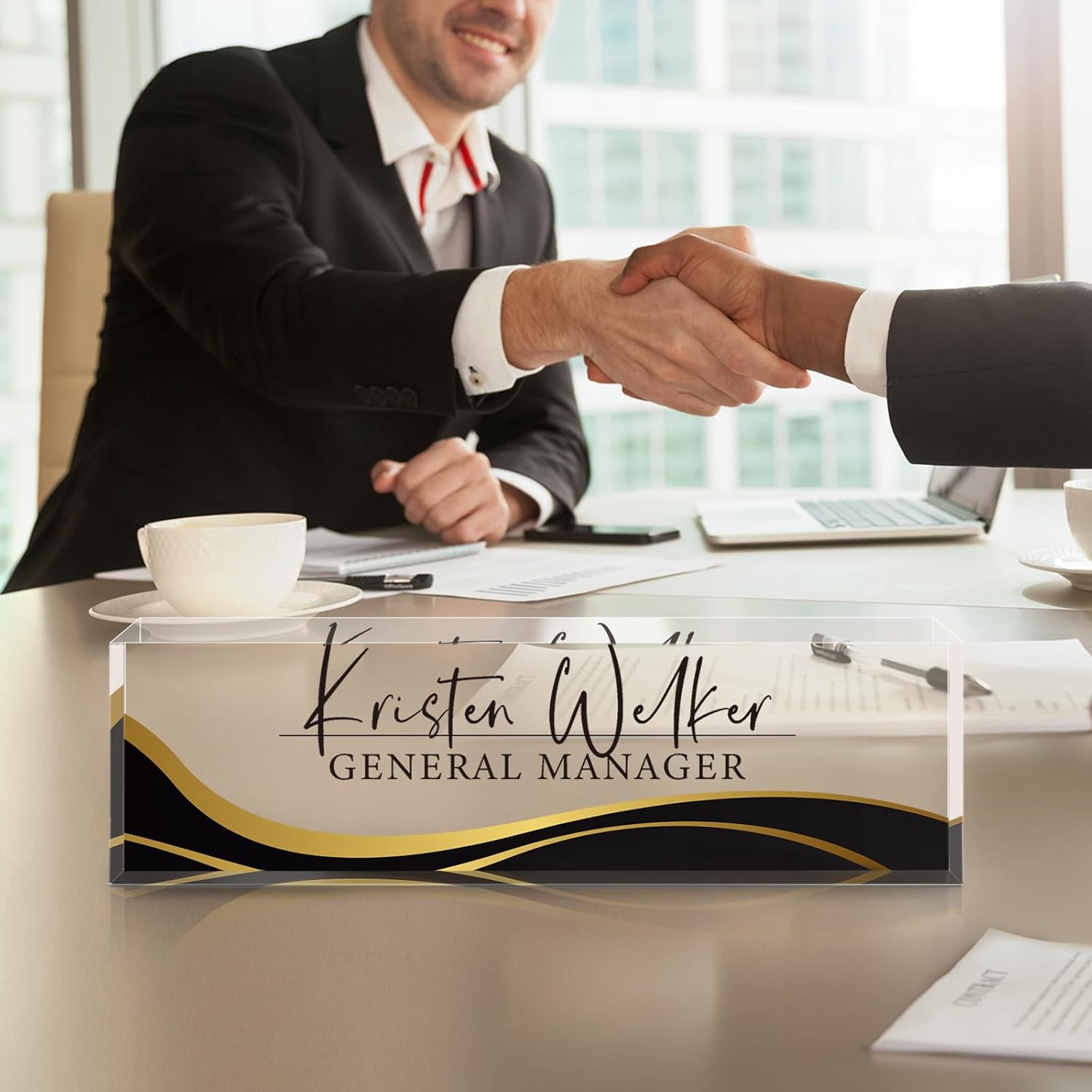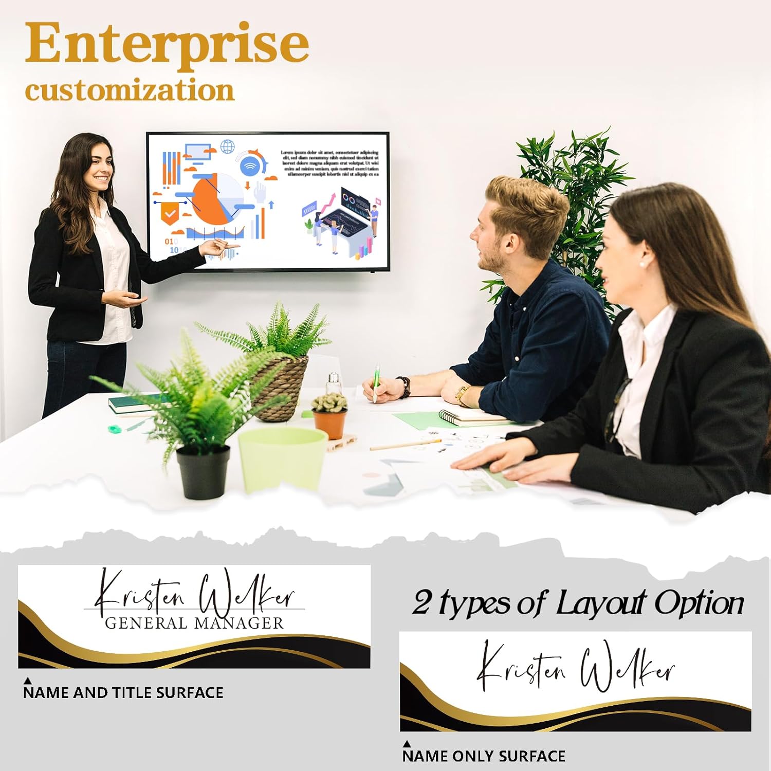 - 【Personalized Name Plate for Desk】Create a unique desk name plates in just four easy steps. We craft bespoke nameplates featuring your name and title, with options to choose your preferred style, design, and front. You can even upload your photo and logo for a truly personalized nameplate. Our talented design team is dedicated to bringing your vision to life. Elevate your office with a professional and unique nameplate that reflects your style.