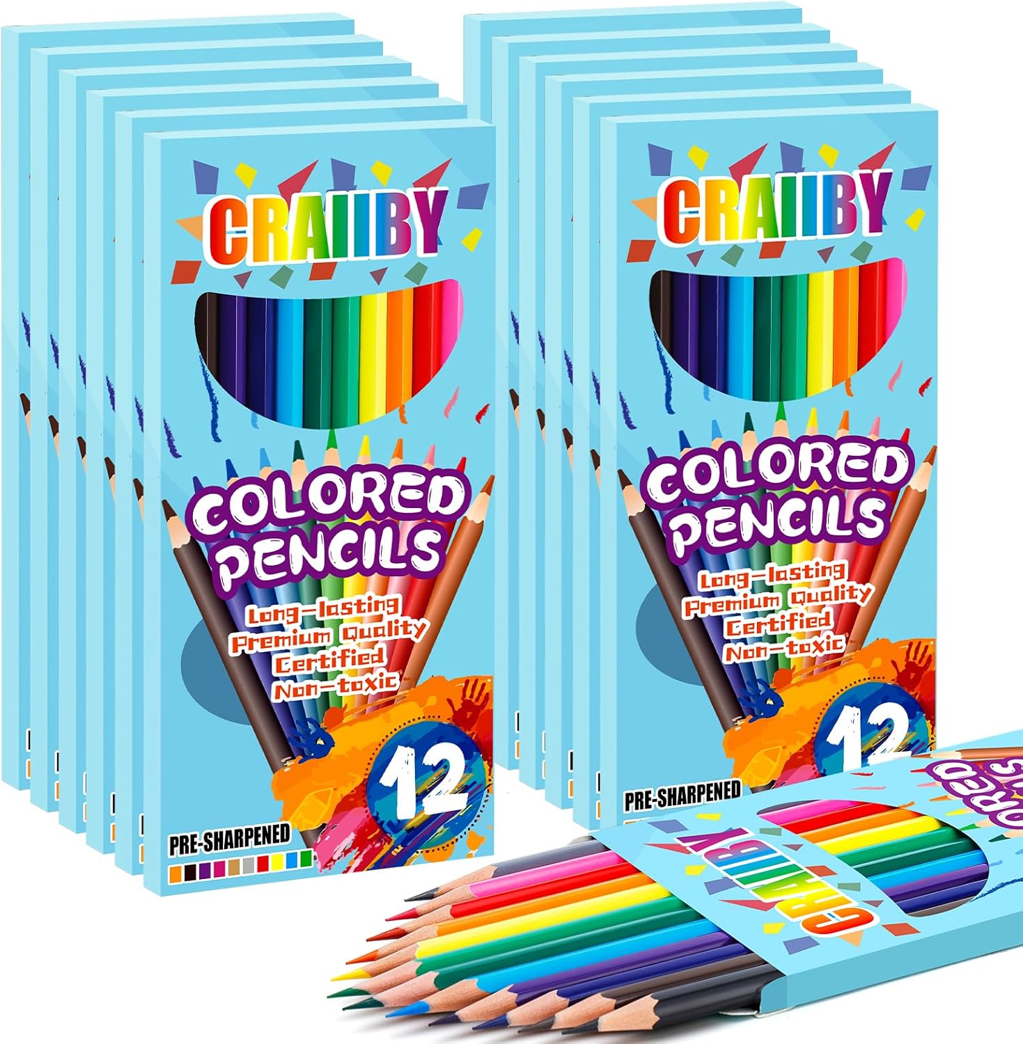 Premium Colored Pencils, Soft Core, 144 Count (Pack of 12), 12 Colors Pre-sharpened Color Pencils Bulk, Back to School Supplies, Classroom Prizes