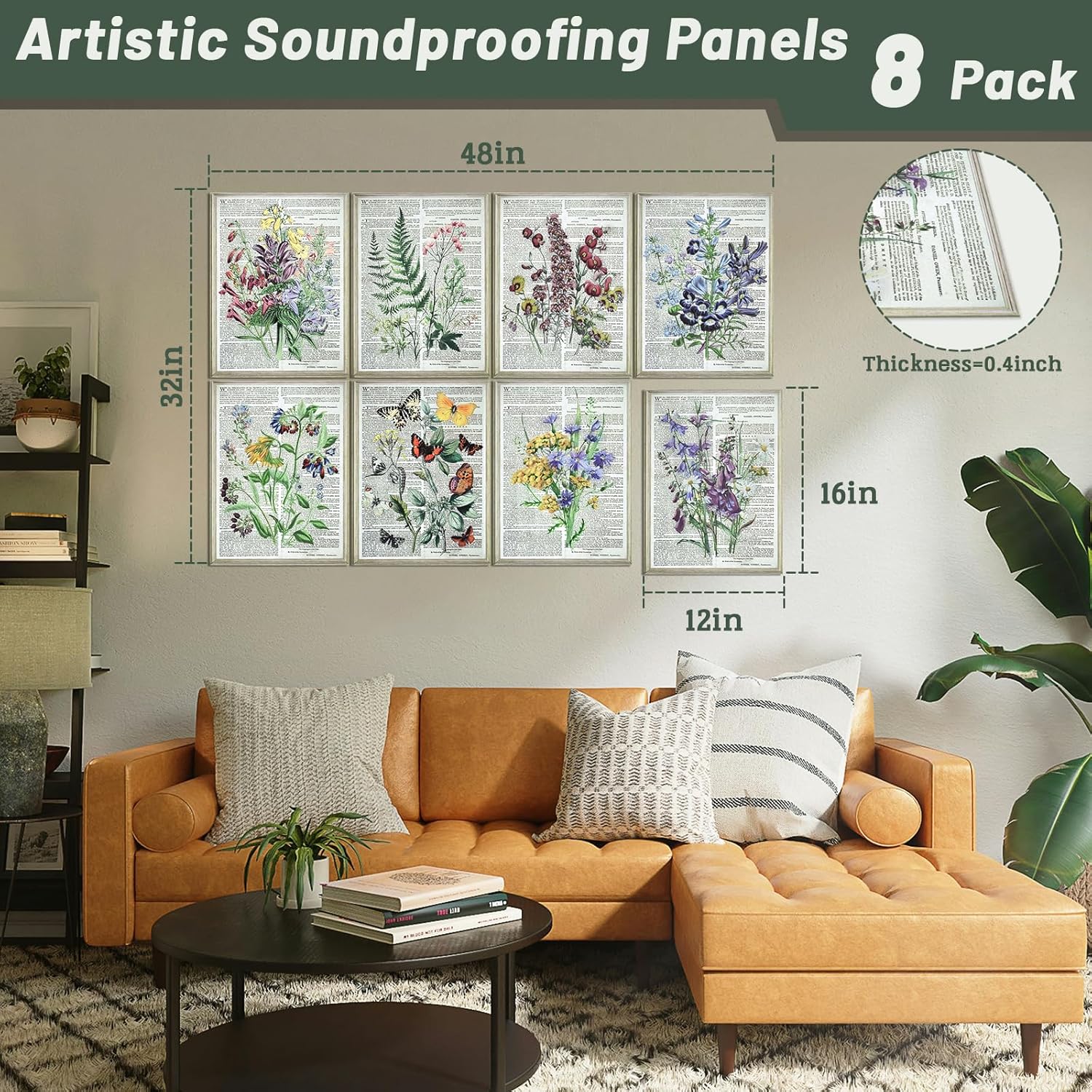 8 Pack Art Acoustic Panels, 48"x32" Soundproof Wall Panels, Decorative Sound Absorbing Panels with Self Adhesive, Sound Dampening Panels, Acoustic Treatment for Home, Office, Studio(Flower)