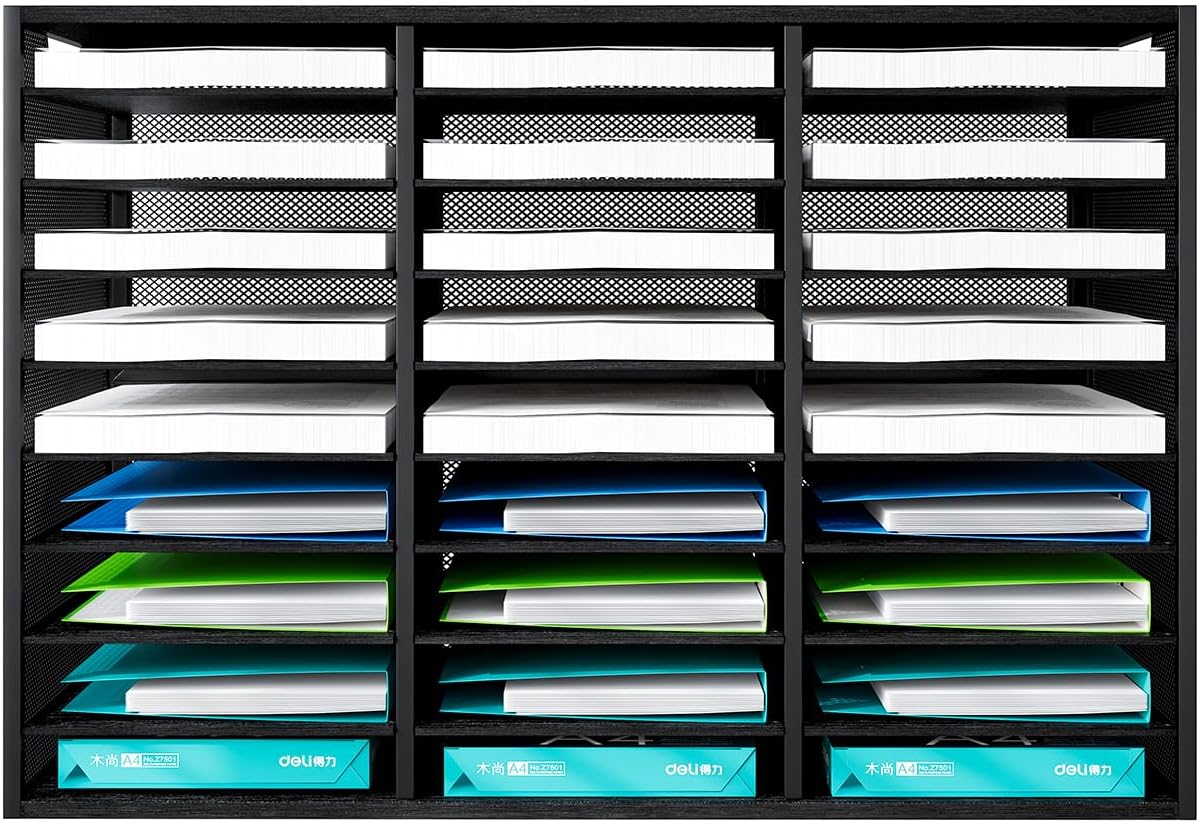 - ▶Amazing Storage Capacity and Space-saving. The literature organizer has 12 compartments, which can help you sort, store and organize literature, magazines, comic books, files, student assignments, binders, catalogs, diaries, papers and documents on your desk or counter quickly and easily and get you valuable workspace back