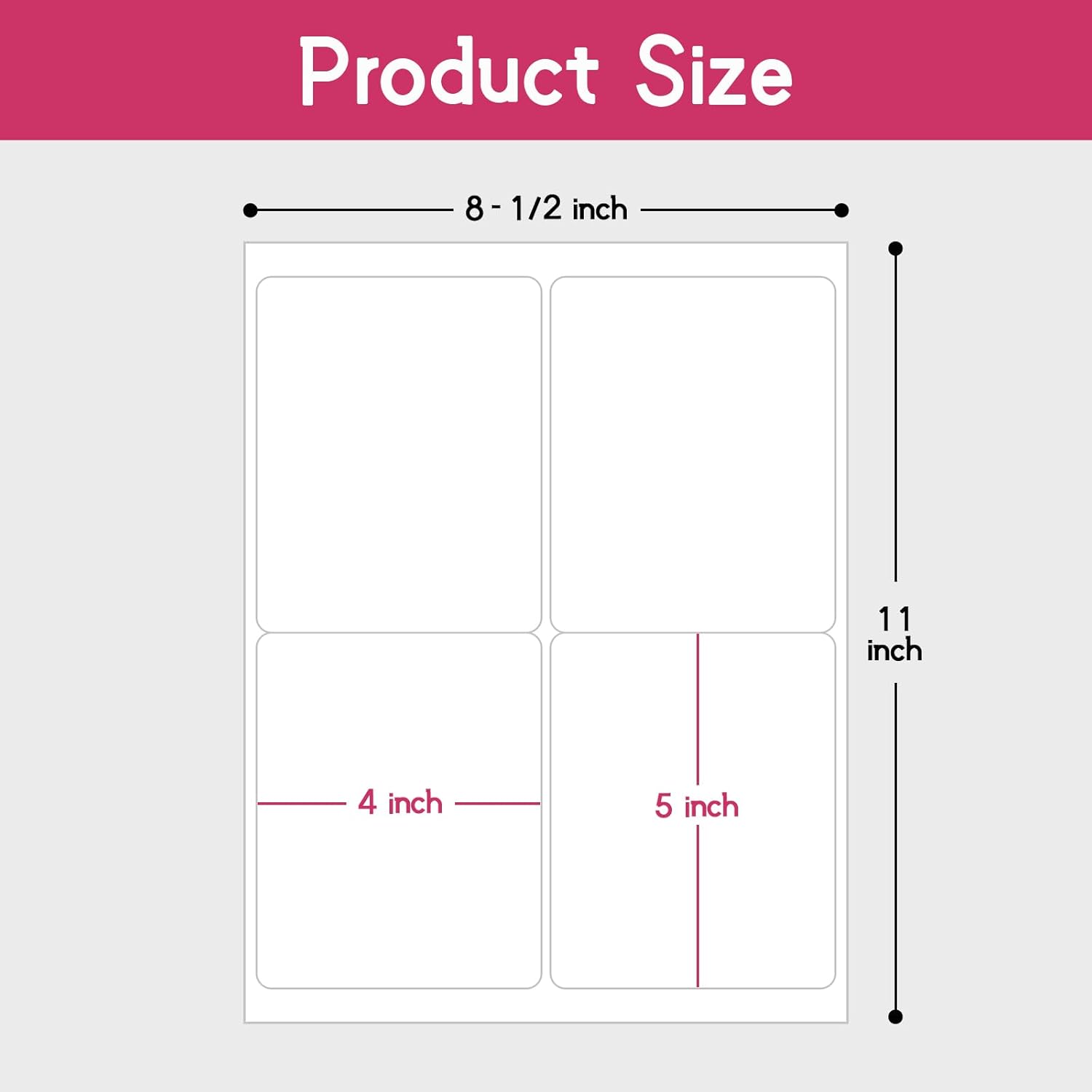 - Specifications: Each label size: 4 x 5 inch, 4 Up shipping address labels, 4 labels per sheet, 100 sheets, 400 Labels