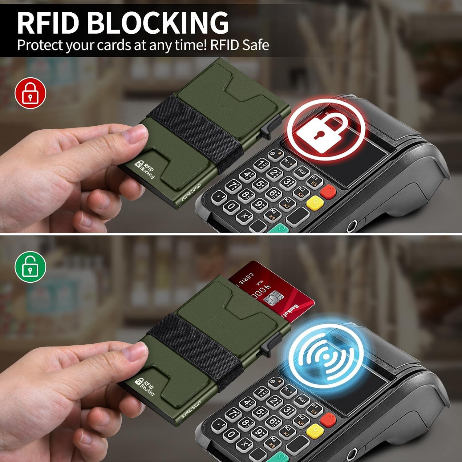 - π RFID & NFC BLOCKING: This smart wallet use advanced aluminium technology to protect your cards from unauthorized and contactless scanning. Stop thieves from cloning your bank cards and prevent data theft.
