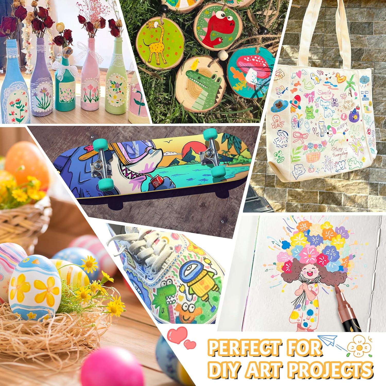 - Versatile Surface Compatibility: These acrylic markers perform flawlessly on a variety of surfaces, including rocks, fabric, metal, glass, wood, canvas, ceramic, plastic, and more. Whether you're working on intricate details or bold designs, they provide smooth, consistent coverage every time, allowing you to unleash your creativity on any medium