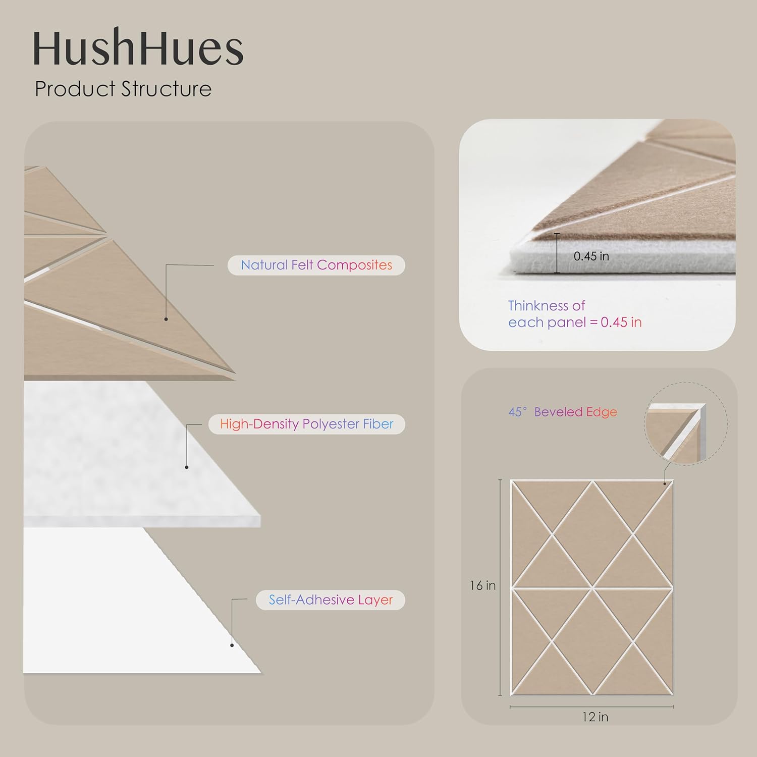 12-Pack Acoustic Panels, 16"x12"x0.4" Large Acoustic Wall Panels, Self-Adhesive Sound Absorbing Panels for Recording Studios & Offices, Camel+White Decorative Acoustic Panels