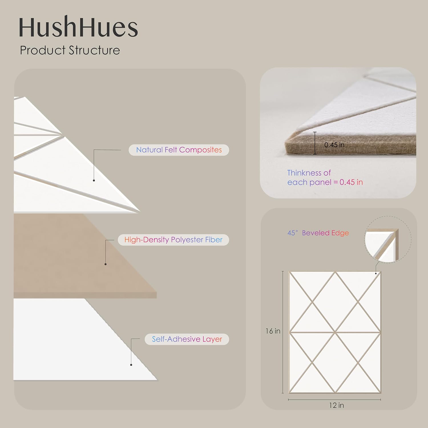 12-Pack Acoustic Panels, 16"x12"x0.4" Large Acoustic Wall Panels, Self-Adhesive Sound Absorbing Panels for Recording Studios & Offices, White+Camel Decorative Acoustic Panels