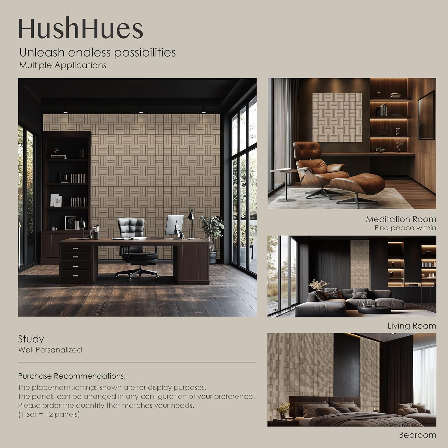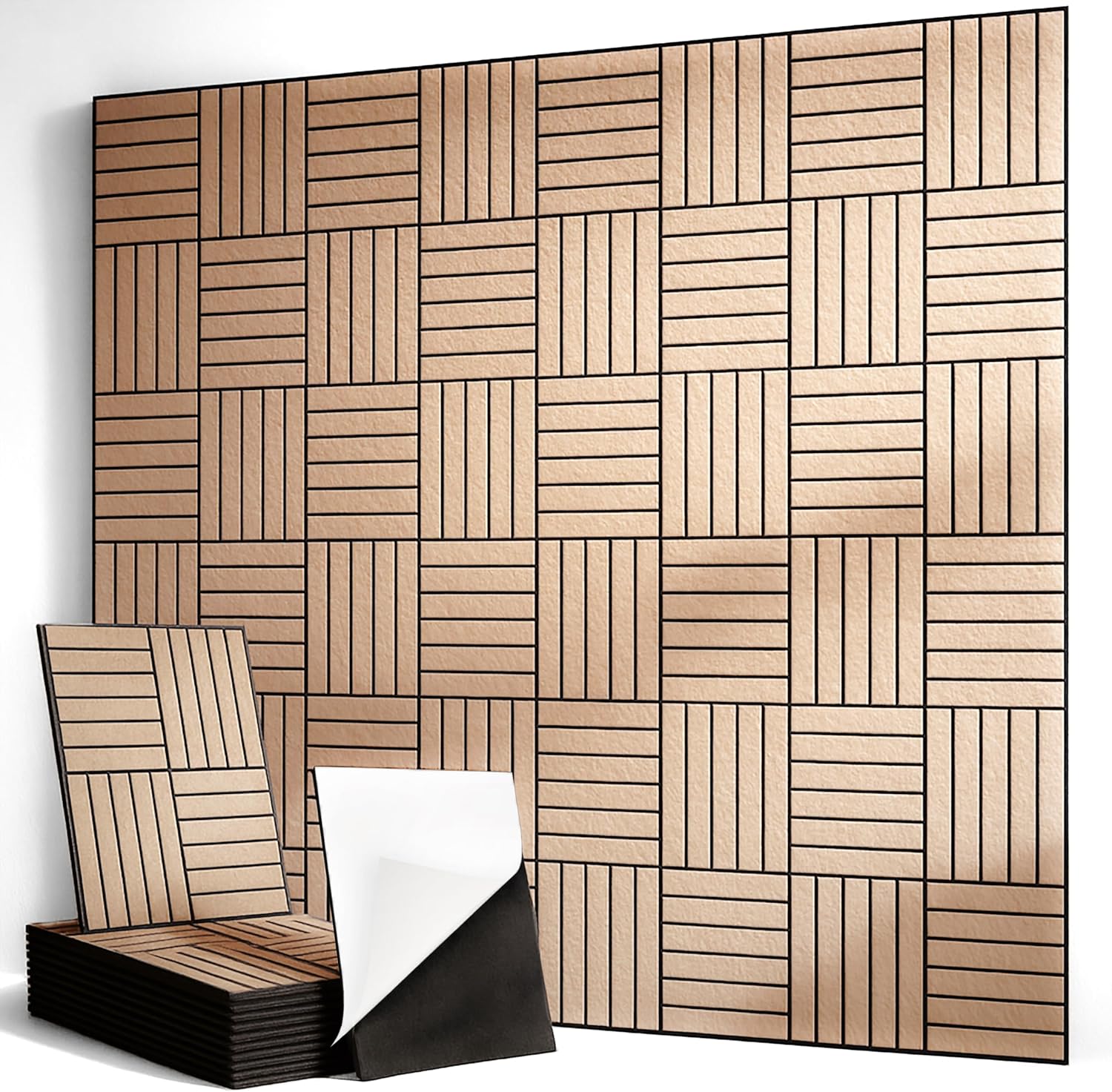 12-Pack Acoustic Panels, 16"x12"x0.4" Large Acoustic Wall Panels, Self-Adhesive Sound Absorbing Panels for Recording Studios & Offices,Camel+Black Decorative Acoustic Panels