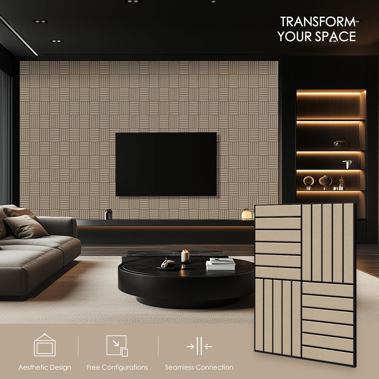 - Elegant Grooved Aesthetics: The sleek, slotted design of our composite acoustic panels adds a modern, stylish touch to any space while enhancing acoustic performance by effectively reducing echoes and noise.