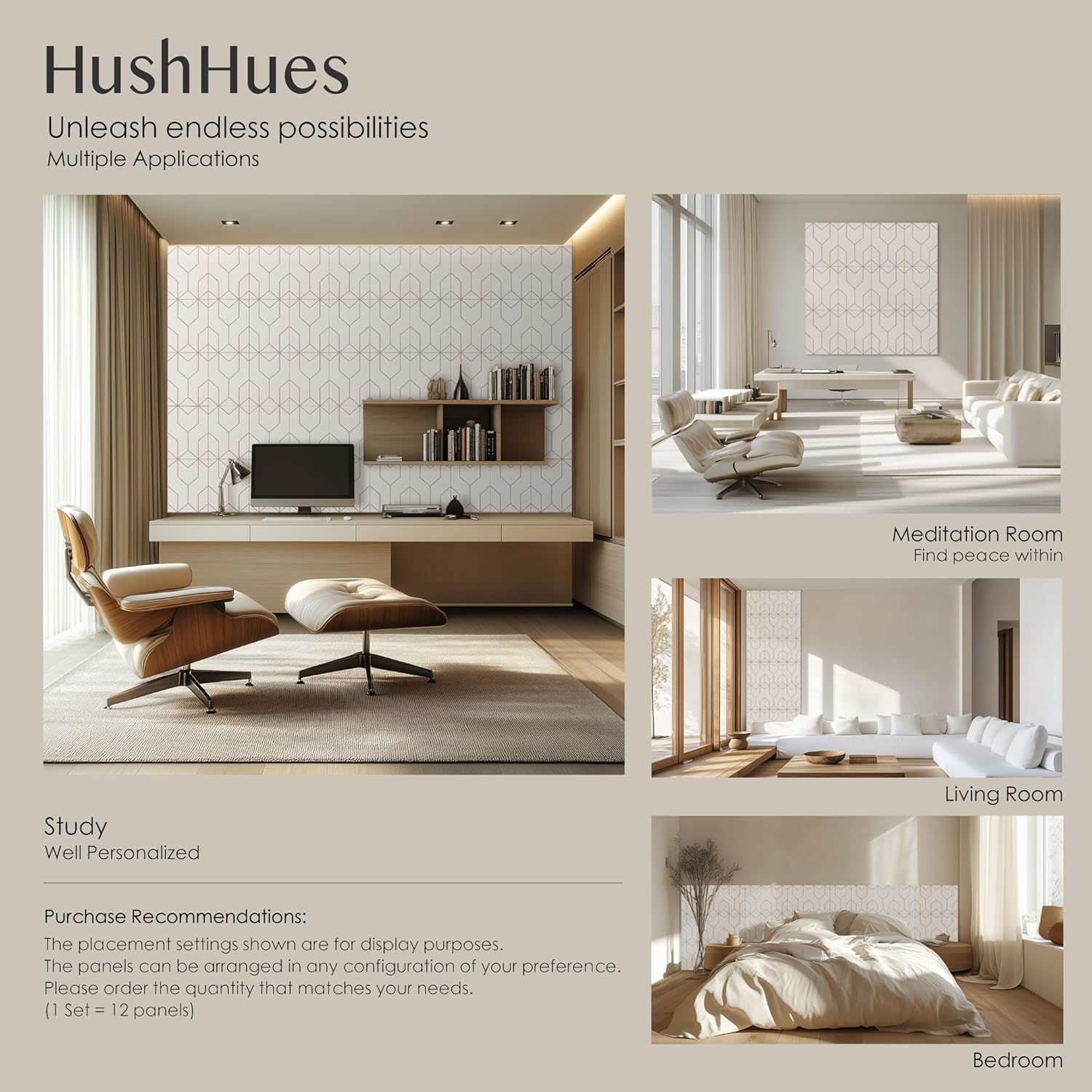 12-Pack Acoustic Panels, 16"x12"x0.4" Large Acoustic Wall Panels, Self-Adhesive Noise Absorbing Panels for Recording Studios, Off-White+Camel Decorative Acoustic Panels