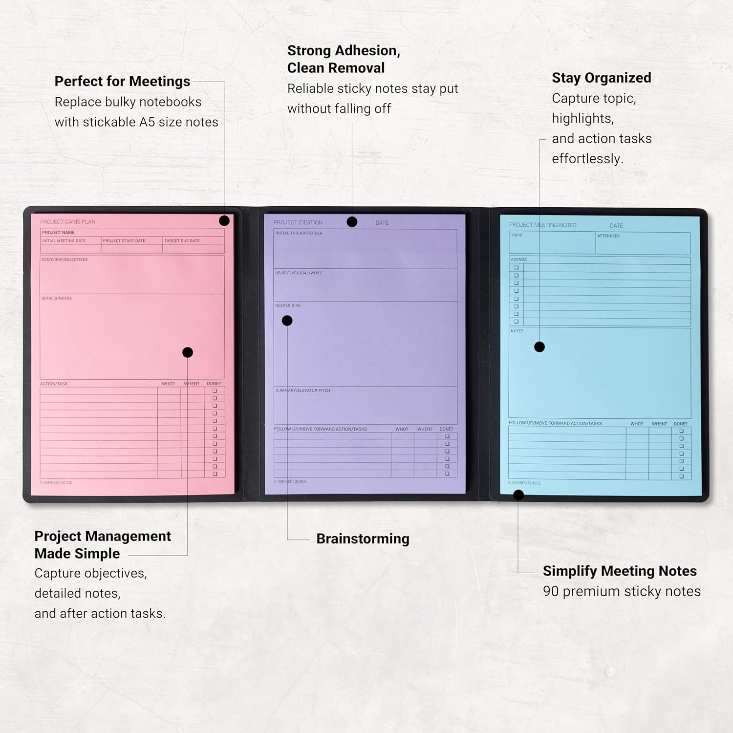 Meeting Notebook for Work & Project Planner Kit for Men and Women – 90 Large Sticky Notes for Work Organization, Project Management, Business Professionals & Work Planners