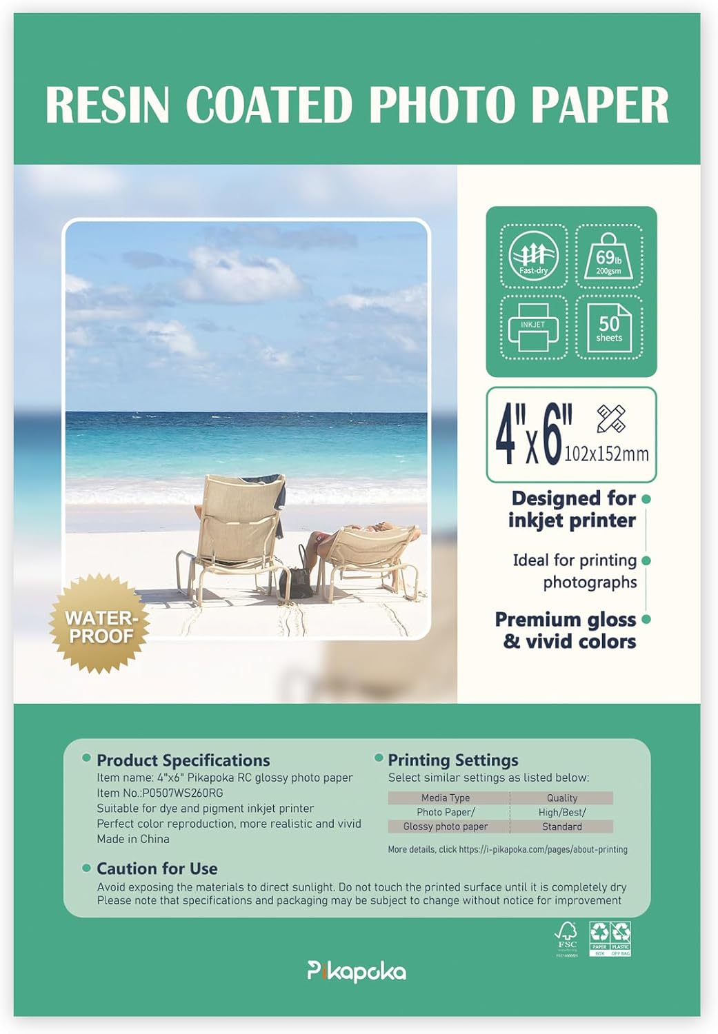 - Archival-Grade Quality: Pikapoka 4x6 RC glossy photo paper is more durable due to its protective resin coating. Can last for years without fading