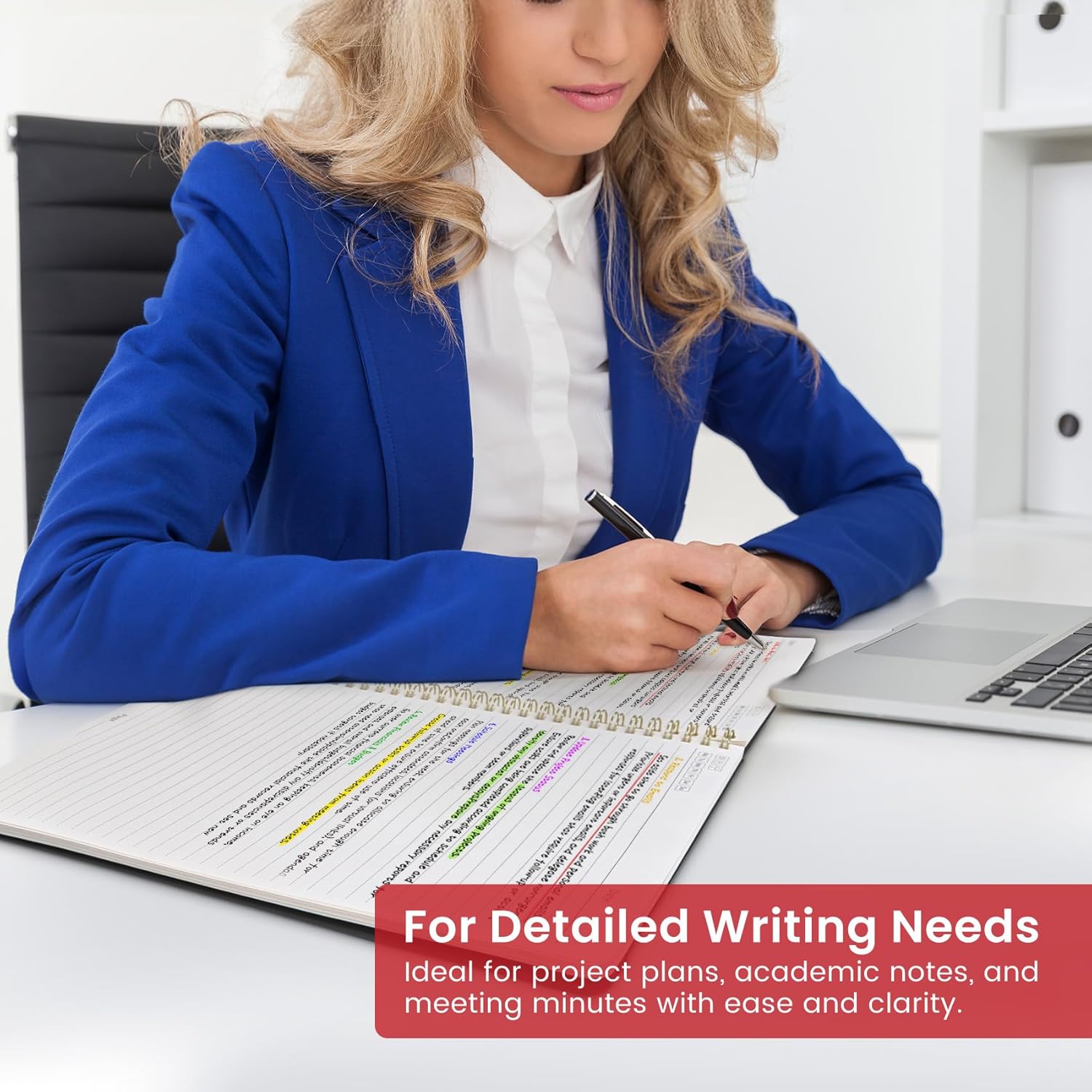 - Large A4 Spiral Notebook: Measuring 8.5" x 11" with standard 7mm college-ruled lines, this large A4 notebook offers ample space for detailed note-taking, journaling, and task management. Its spacious pages are perfect for capturing ideas, organizing thoughts, and managing projects—whether at work, school, or in your home office.