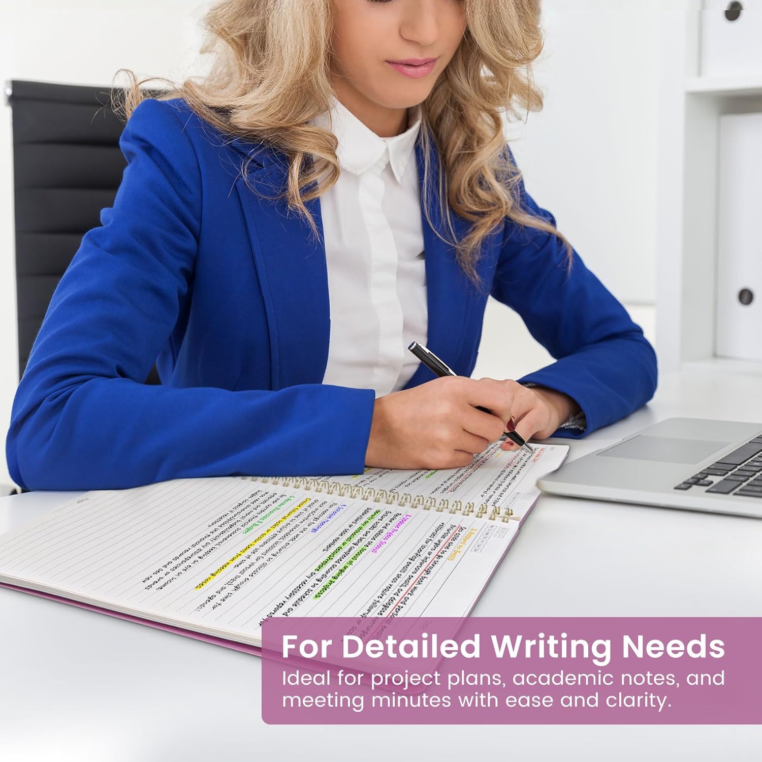 - Large A4 Spiral Notebook: Measuring 8.5" x 11" with standard 7mm college-ruled lines, this large A4 notebook offers ample space for detailed note-taking, journaling, and task management. Its spacious pages are perfect for capturing ideas, organizing thoughts, and managing projects—whether at work, school, or in your home office.