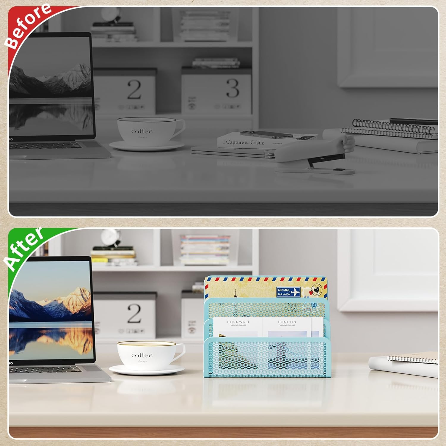 - 【Space Saving】Marbrasse amazing mail sorter organizer features three compartments, specially designed to consolidate your desktop items. This fantastic mail holder will tame your desk clutter, save valuable space, and keep your workspace clean and orderly