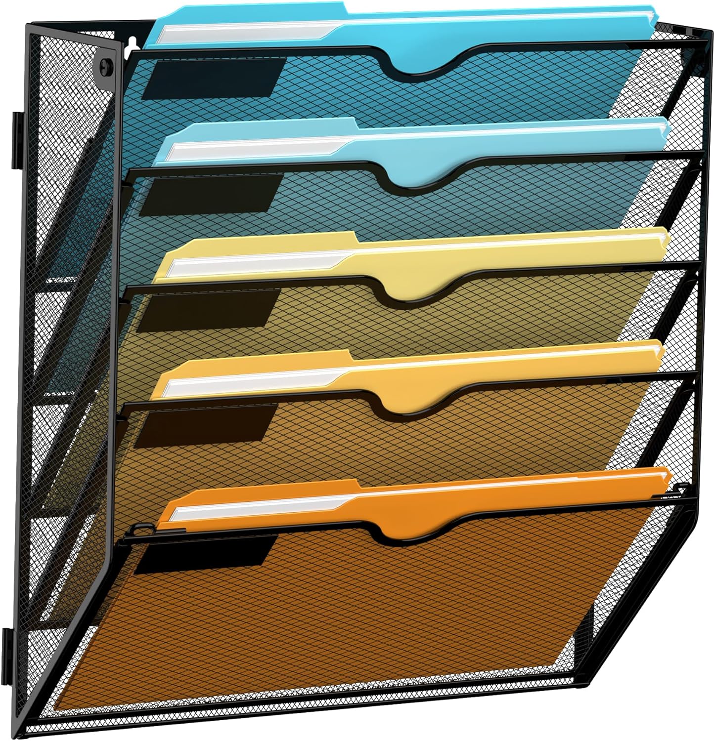 SUPEASY 5-Tier Wall File Organizer Mesh Office Mail Holder, Hanging Wall Organizer Magazine Rack for Office Black