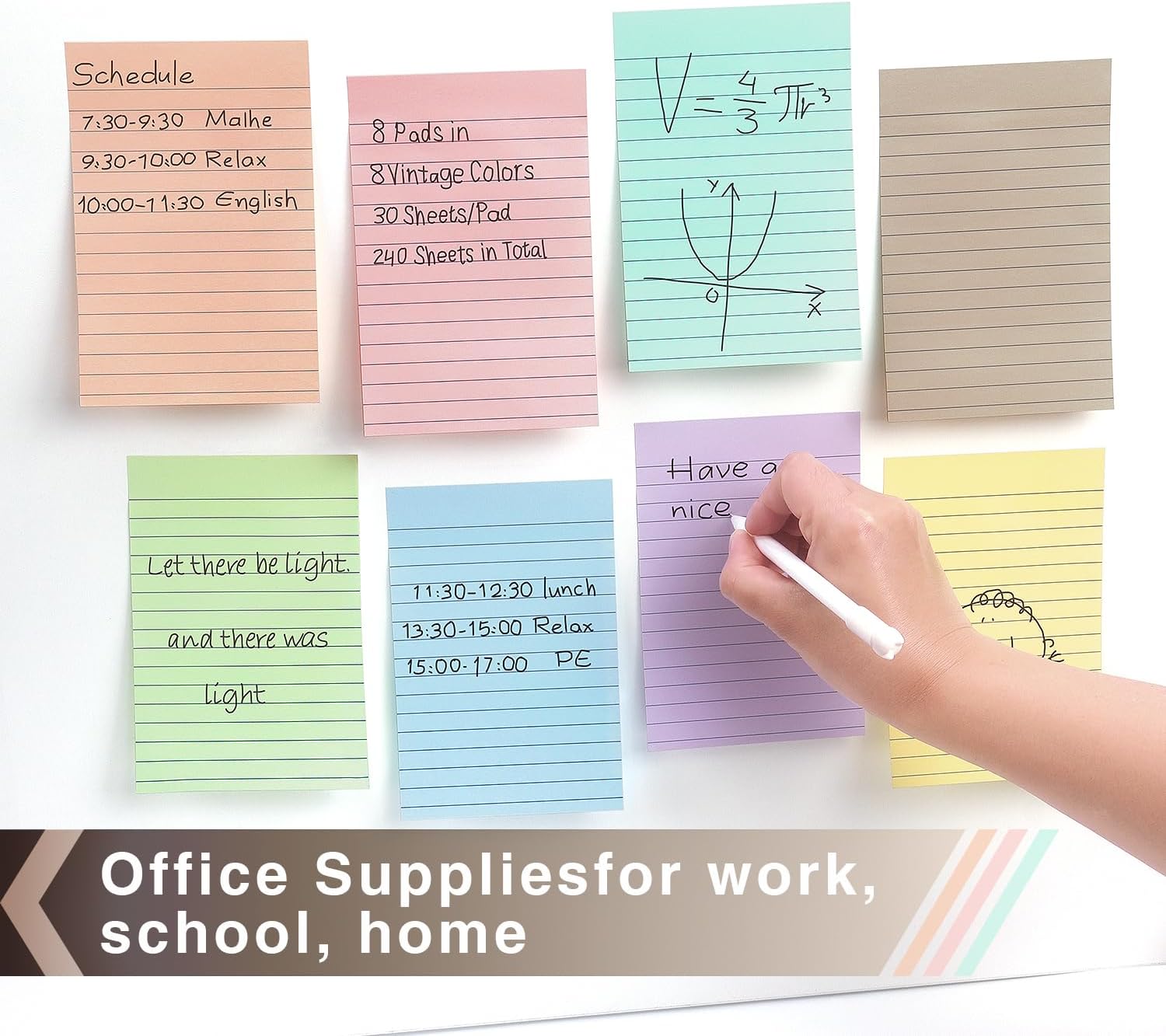 4x6 Inch Lined Sticky Notes, 8 Pack, Light Colors, Premium Self-Adhesive Notepads, Large Sticky Pads for Office, School & Home Use, Easy to Use, Reusable & Removable