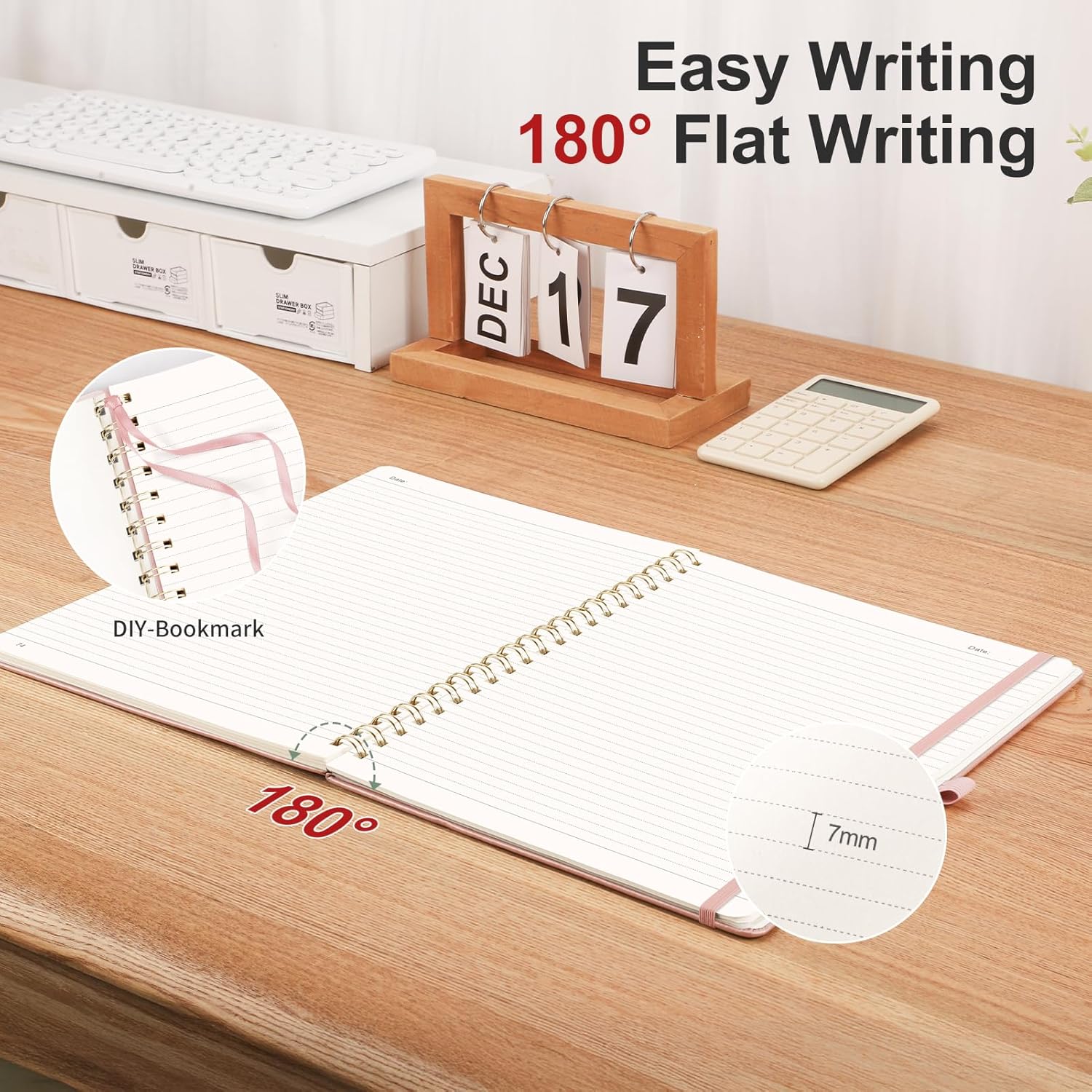 - HARDCOVER LEATHER SPIRAL NOTEBOOK: This spiral notebook features a durable, waterproof vegan leather cover that protects your notes from damage. The double-wire binding allows for easy folding and 180Β° lays flat for convenient writing