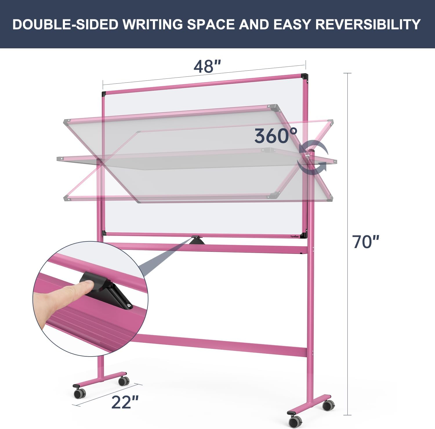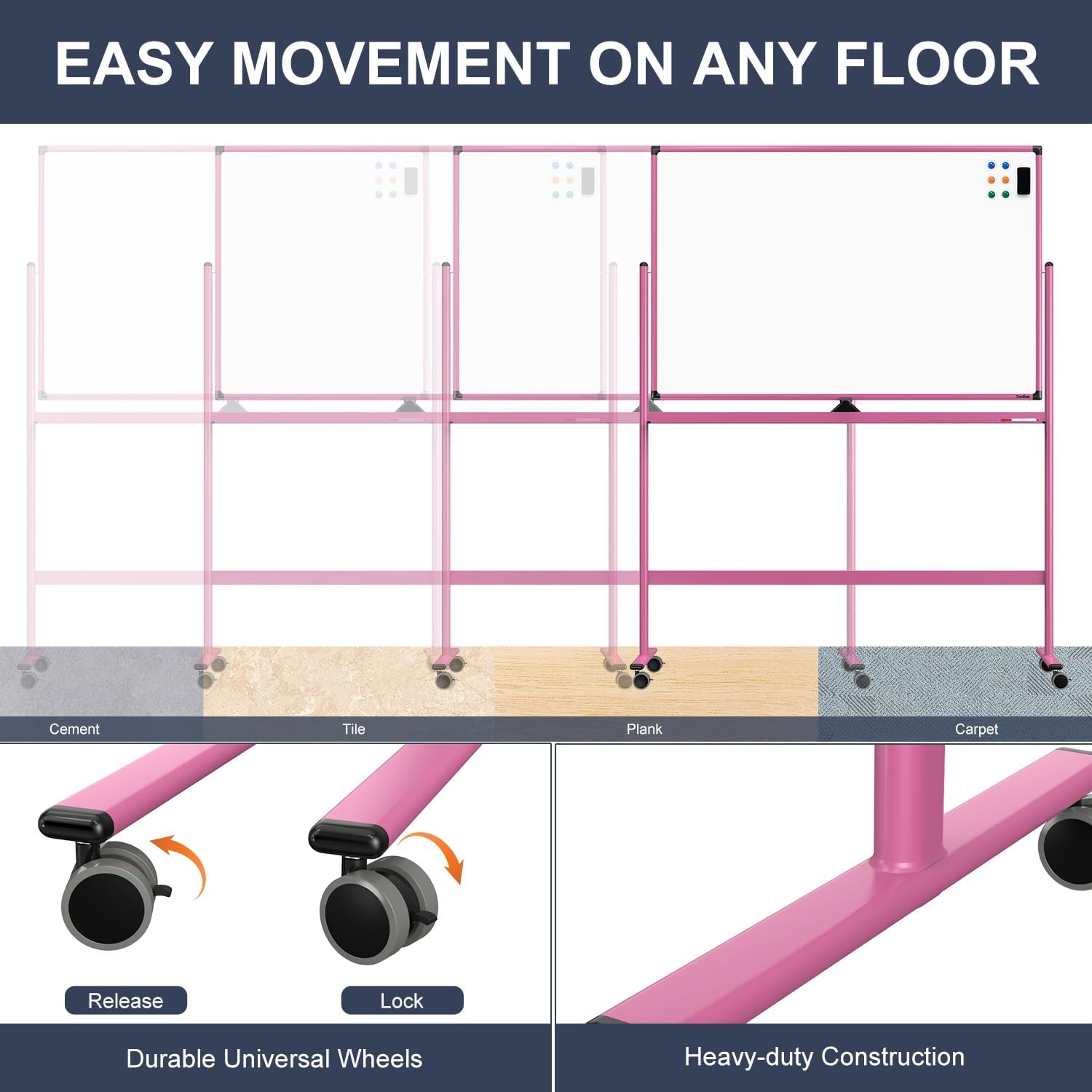 - 360Β° ROTATED & LOCKABLE - The dry erase board comes with 4 sturdy universal wheels that support 360Β° rotation. Each wheel has a locking system to keep it stable while writing and wiping.
