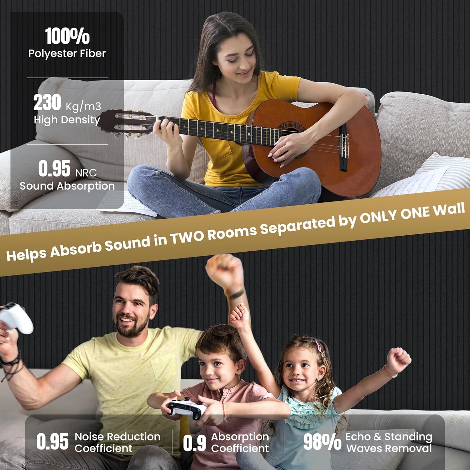 10 Pack Large Acoustic Panels,48 x 24 x 0.4 Inch Sound Proof Foam Panels for Walls,Premium Noise Dampening Panels,Sound Panels for Media Room, Office and Studio,Black
