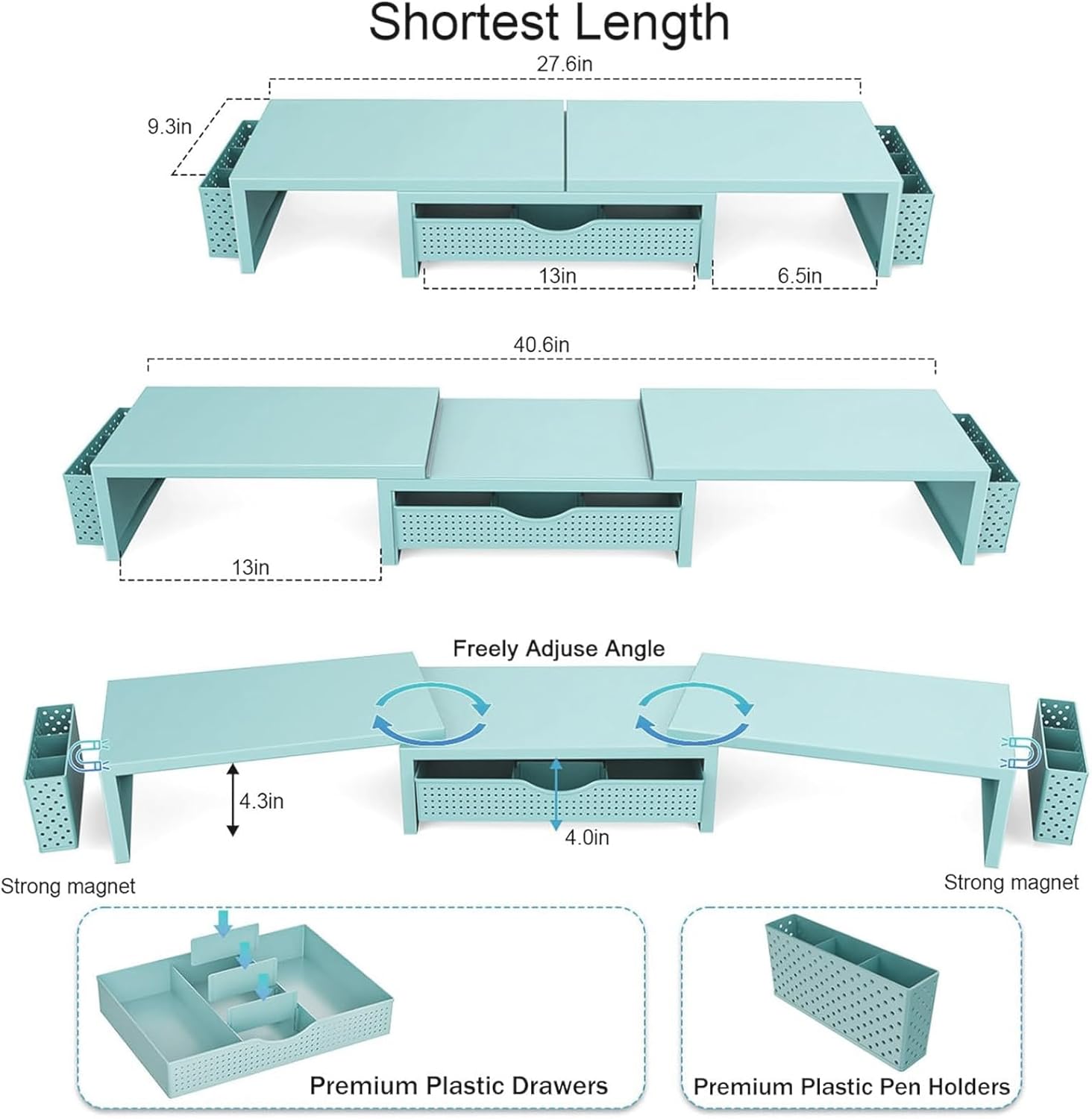 - ćAmple Storage SpacećThe dual monitor stand features two magnetic pen holders and a drawer, allowing you to easily organize your desk accessories and office supplies, keeping your workspace clear and tidy for easier access.